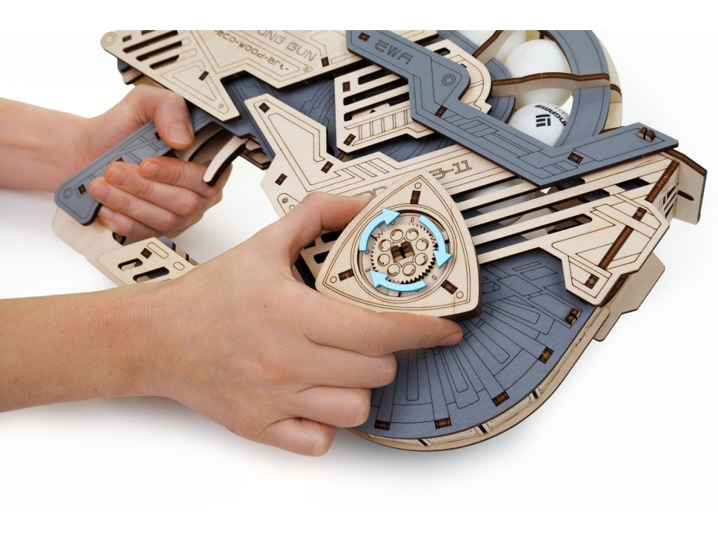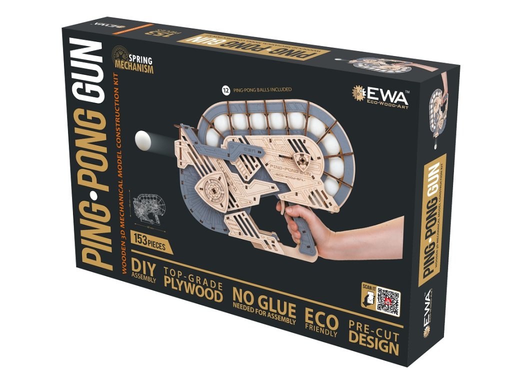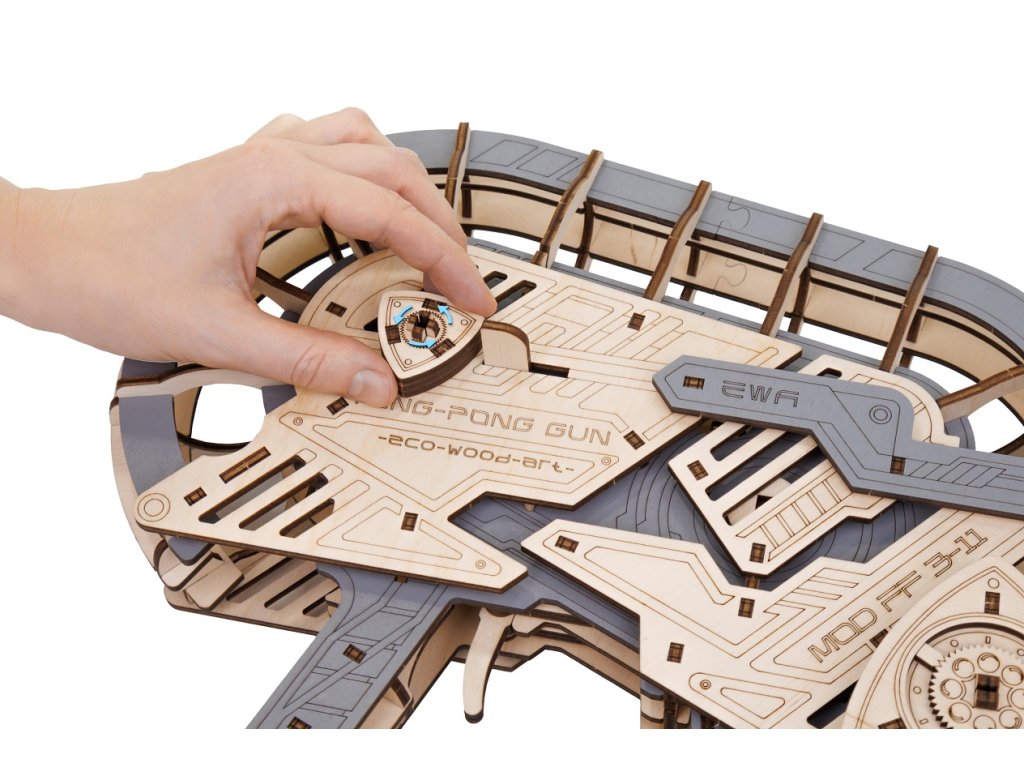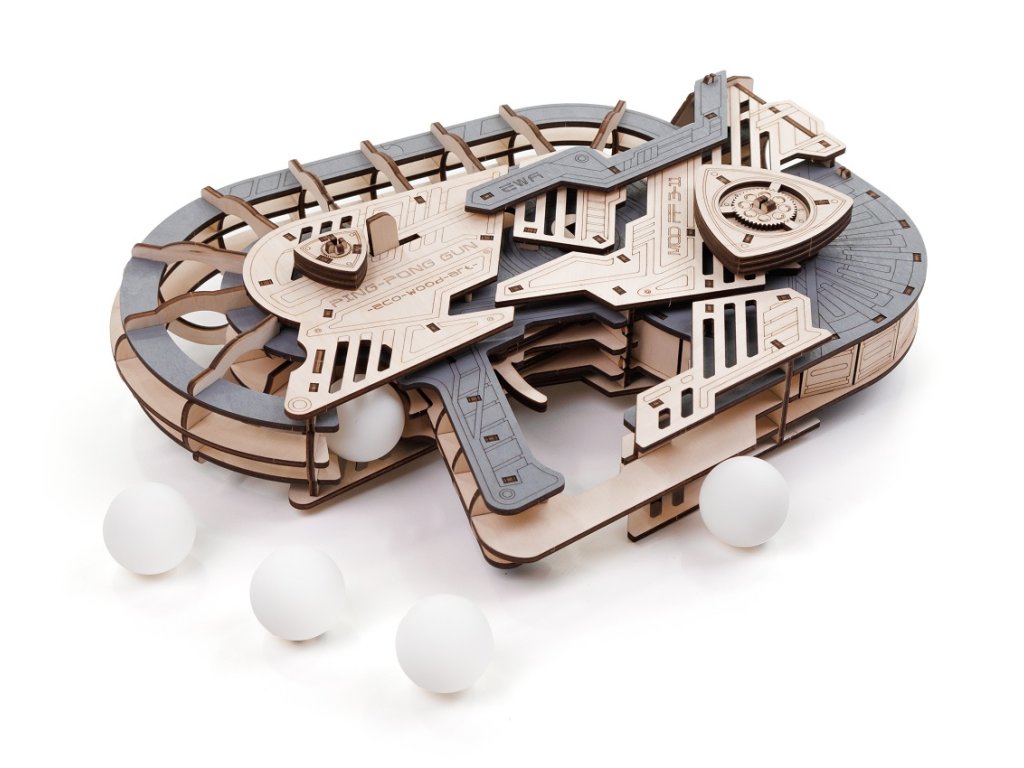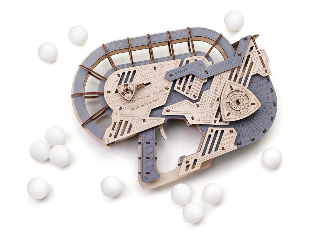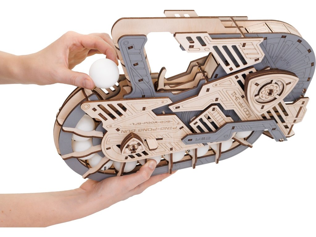 Entdecken Sie den originellen 3D-Holzbausatz. Dieser Tischtennisball-Werfer ist ein originelles und unterhaltsames Modell mit beweglicher Mechanik. Nach dem Zusammenbau laden Sie den Werfer mit einem Tischtennisball, drücken Sie den Abzug und der Ball fliegt. 12 Bälle sind im Lieferumfang enthalten.