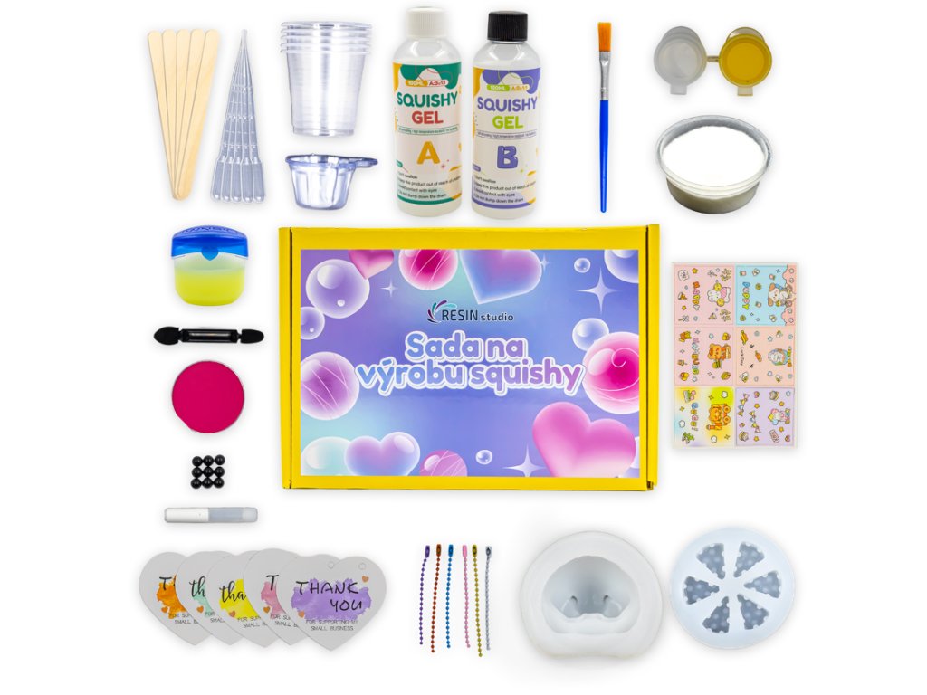 Mach deine eigenen Squishies! Mit diesem Kreativset gestaltest du den Internethit – Taba Squishies, die farbenfroh und klebrig sind oder dank Flockpuder eine kuschelig-weiche Oberfläche haben. Einfach Gel mischen und färben, Form ausstreichen, eingießen und nach wenigen Stunden hast du ein tolles Anti-Stress-Spielzeug in der Hand. Damit die Squishies nicht so schnell kaputt gehen, findest du im Set auch Zip-Beutel, in denen du sie aufbewahren und dekorative Kugeln hinzufügen kannst.