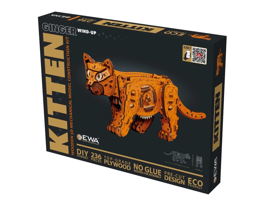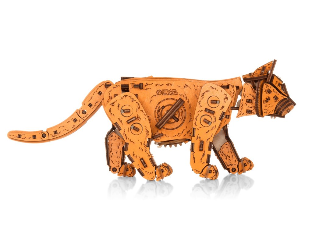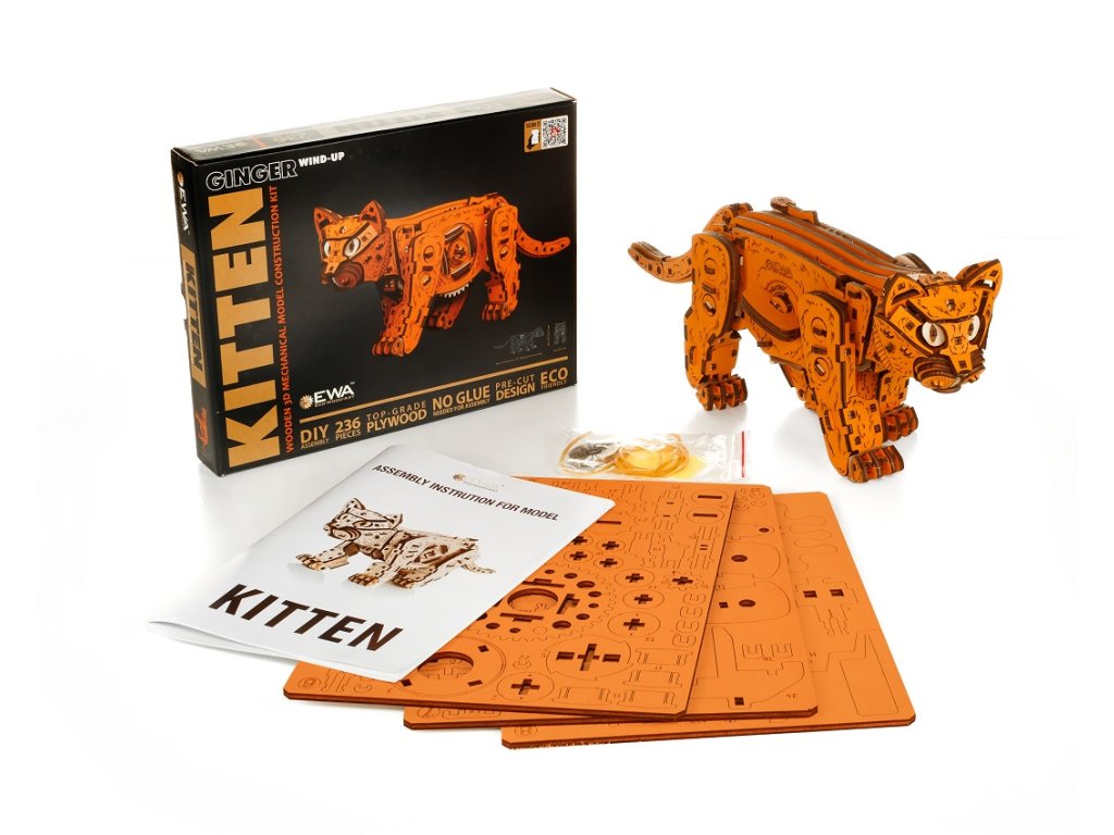 Objevte originální 3D dřevěnou stavebnici. Tato kočka je mechanická skládačka, kterou si sami sestavíte a která po natažení samostatně chodí jako živá díky chytrému mechanickému pohonu uvnitř.