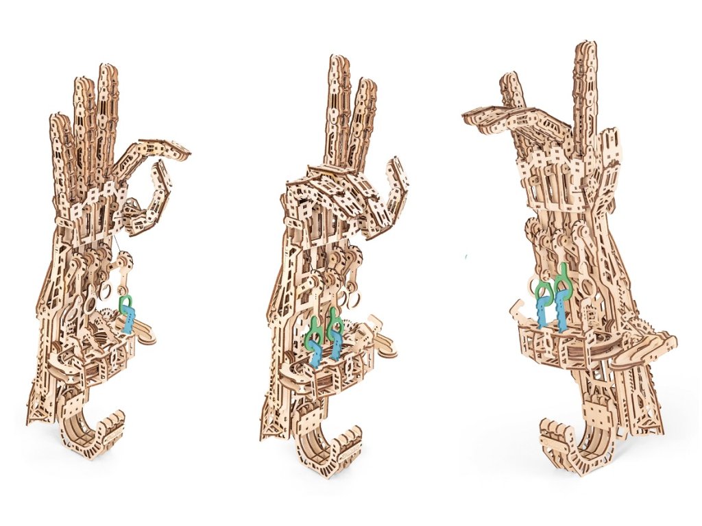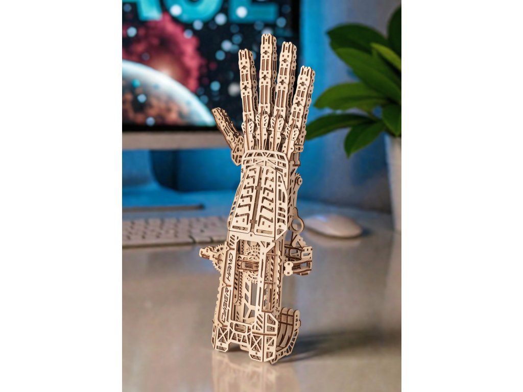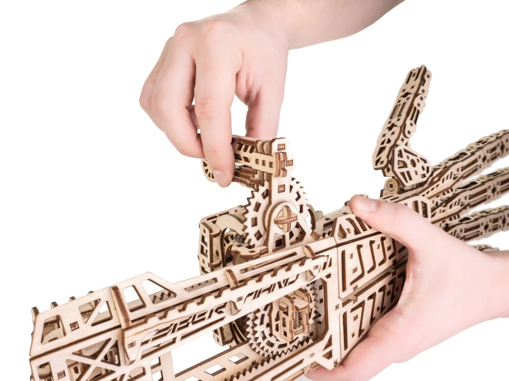 Dřevěná 3D stavebnice — kybernetická ruka