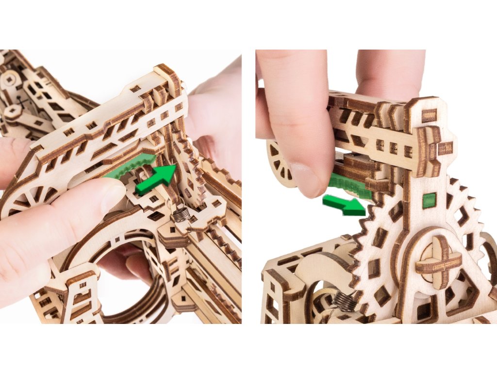 Žádné baterie, jen čistá mechanika a precizně zpracované, silné, březové překližkové dílky. Skvělá zábava pro teenagery i dospělé, ideální jako kreativní dárek i stylová dekorace.