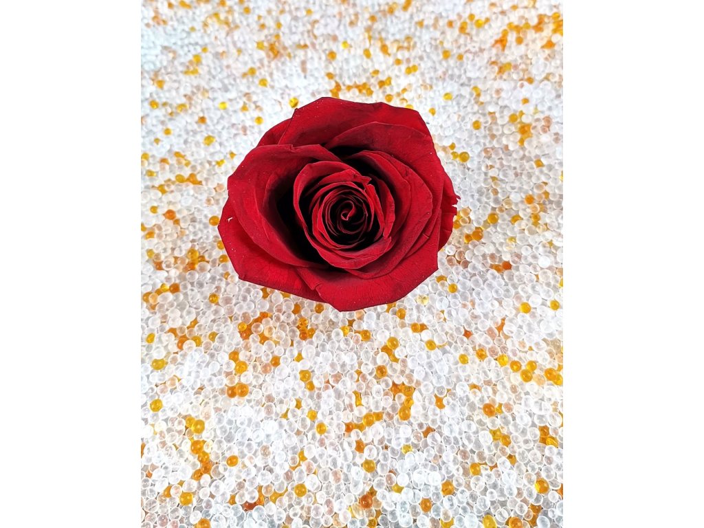 Once the indicator orange silica gel crystals have absorbed a certain amount of moisture, they change colour from orange to green, after which the silica gel can be regenerated (dried and reused). The flowers dry out without loss of colour.
