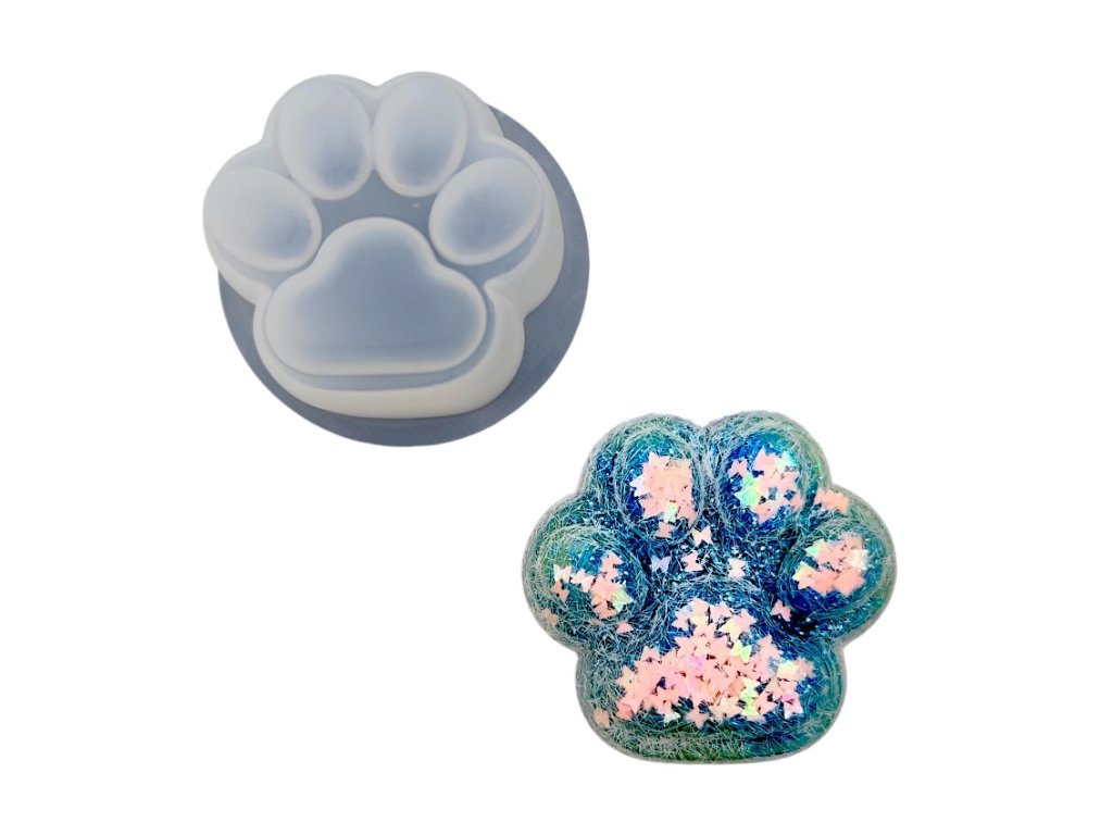 Silicone mould for making a paw print. The mould is suitable for epoxy resin, wax, soap mass, squishy gel and cold cast materials.