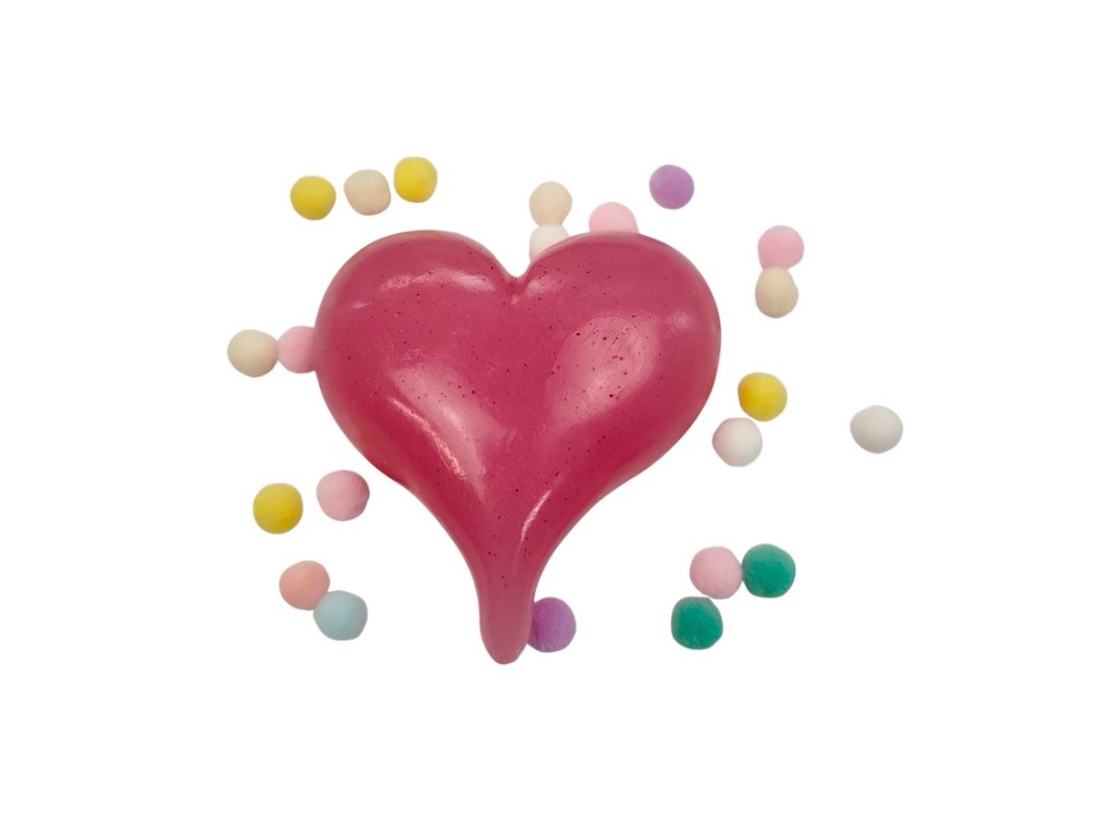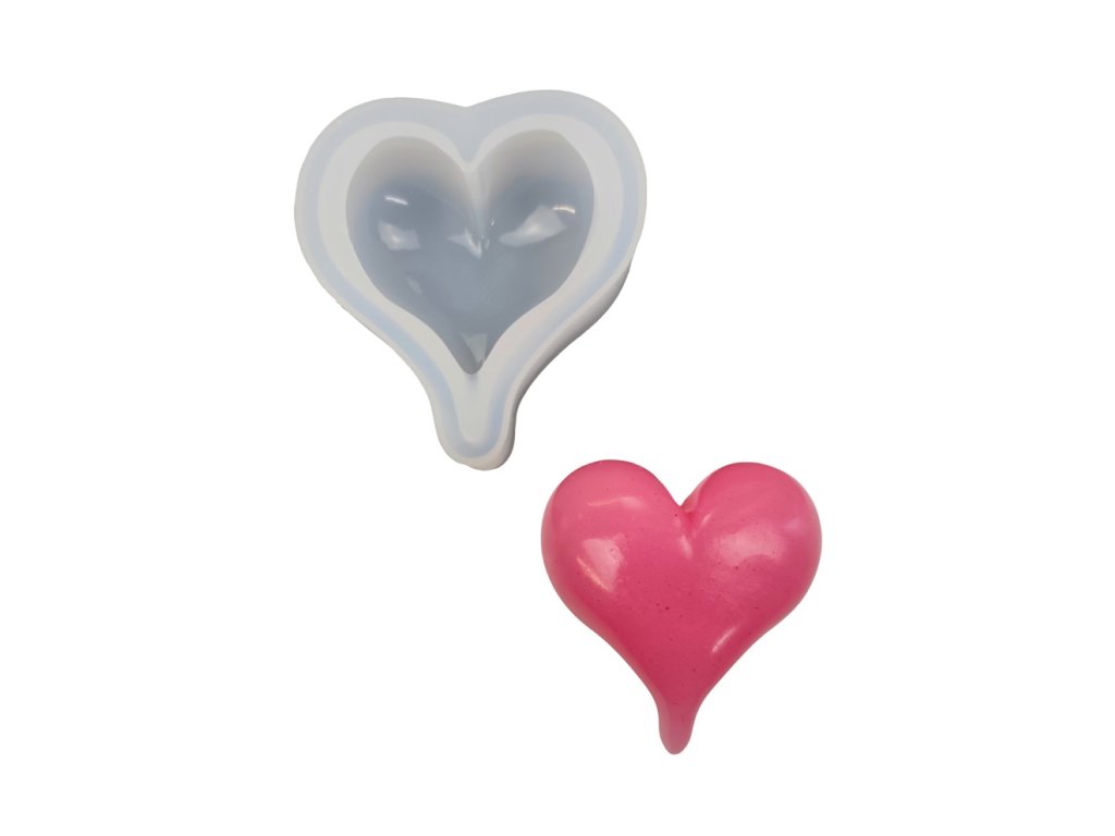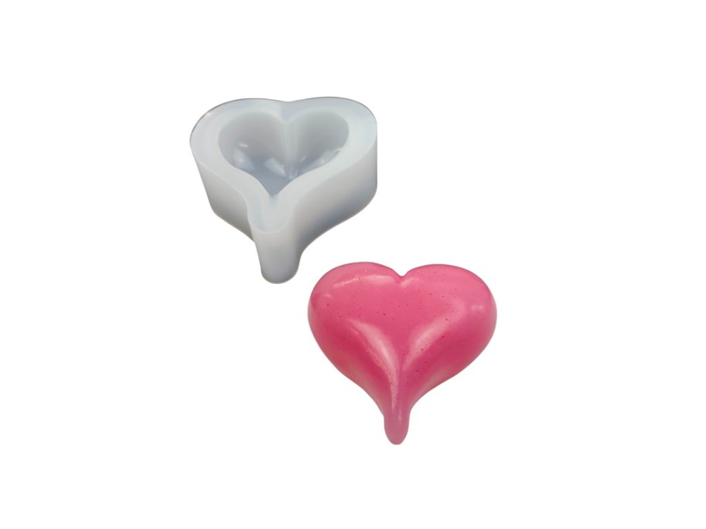 Silicone mould for making hearts. The mould is suitable for epoxy resin, wax, soap mass, squishy gel and cold cast materials.