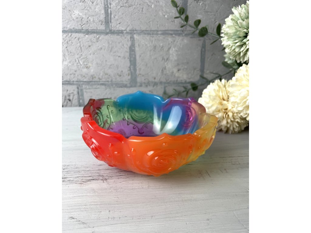 Silicone mould for creating a bowl with an elegant pattern. You do not need to further modify the cast, you take it out of the mould in the shape of a bowl. The mould is suitable for epoxy resin and other cold casting materials such as NatuResin, plaster, concrete, etc.