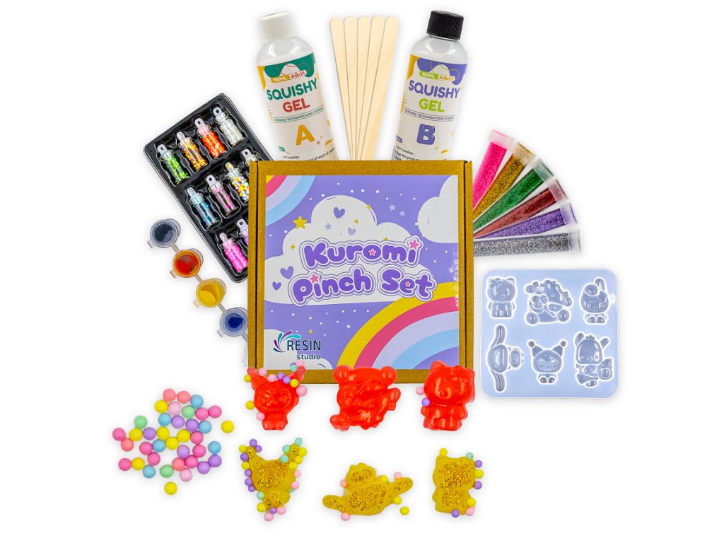 The amount of squishy gel in the kit is enough for 10 squishy sets consisting of six mini squishies. Want to create more? The mould is reusable, just buy more squishy gel.