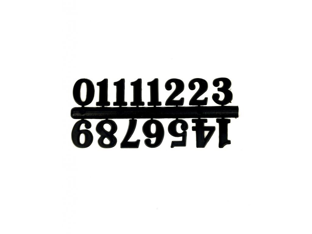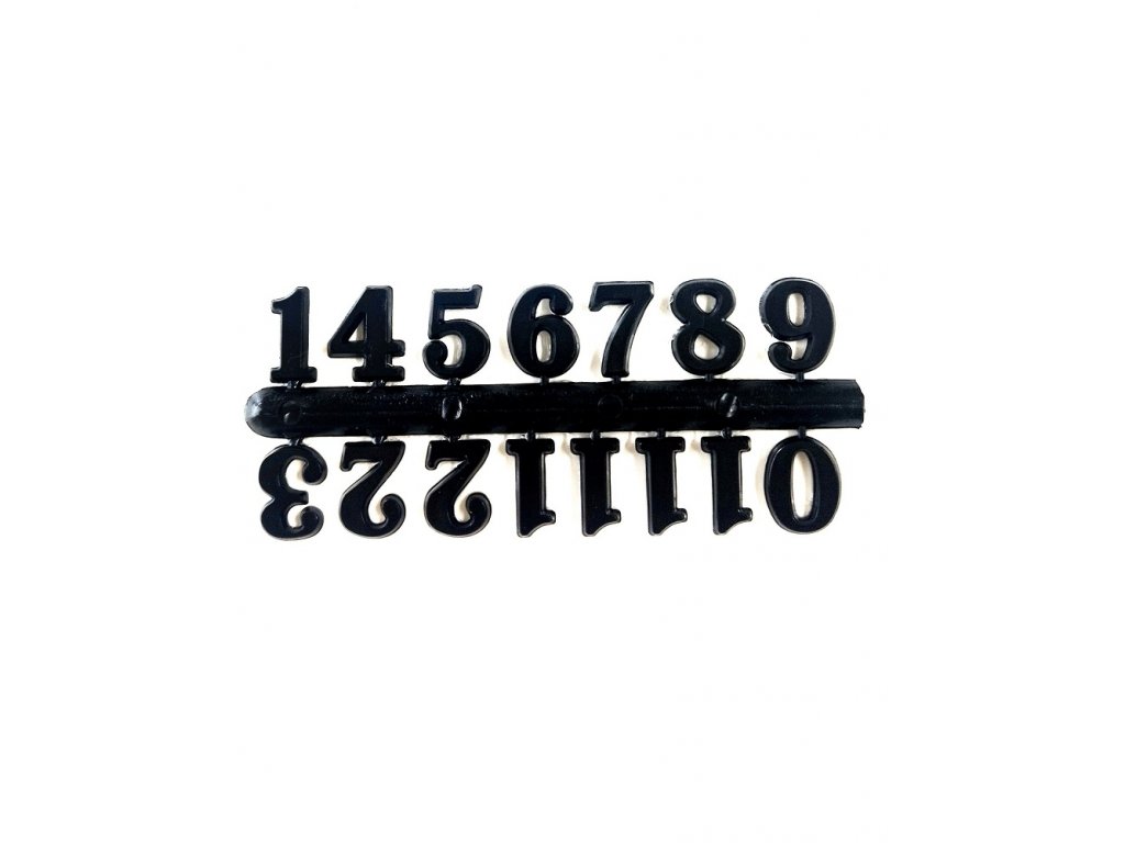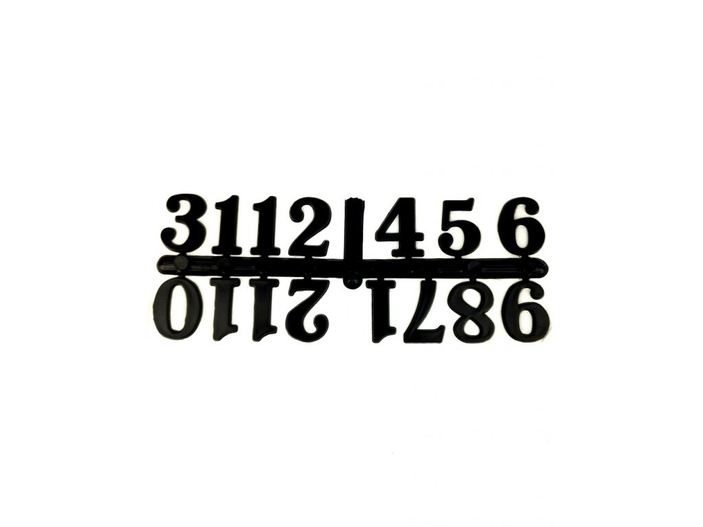Sada čísel vhodná pro výrobu hodin. Na zadní straně číslic je samolepka pro snadné přilepení na již vyrobené hodiny z pryskyřice.