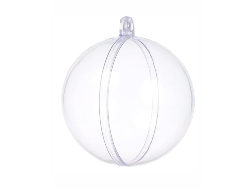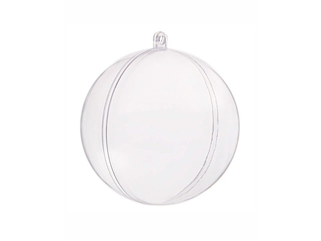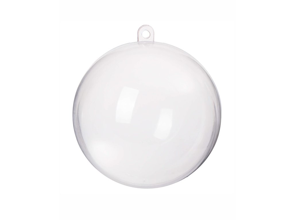 Dvoudílná koule o průměru 4 cm s průvlekem k zavěšení. Obě polokoule se dají rozdělit, aby bylo možné vložit libovolnou náplň nebo dekorace.