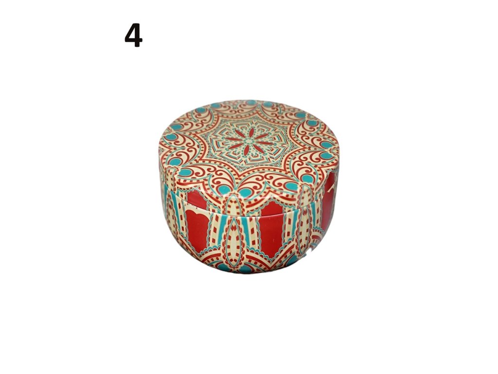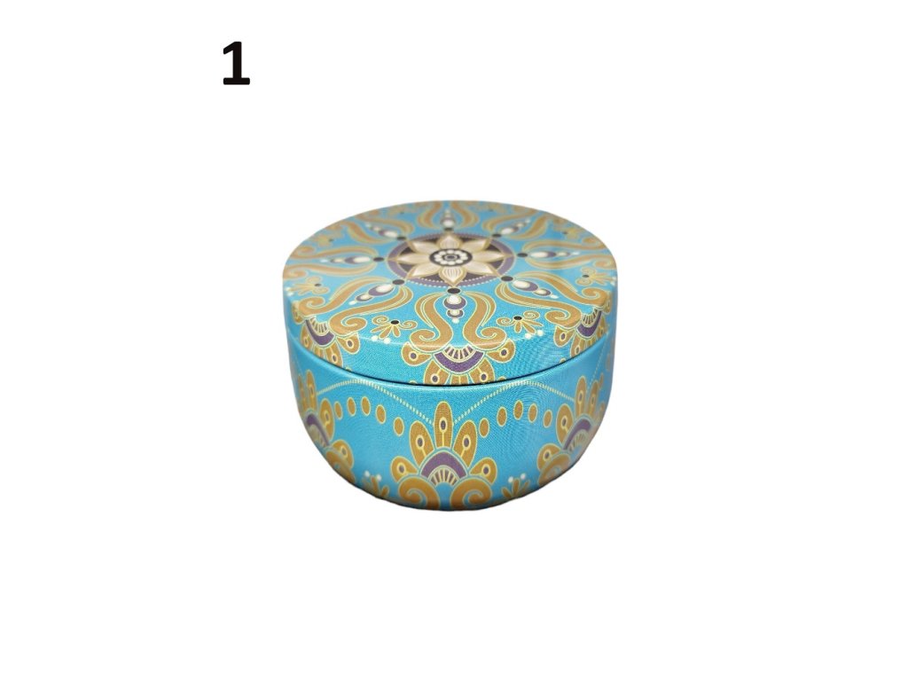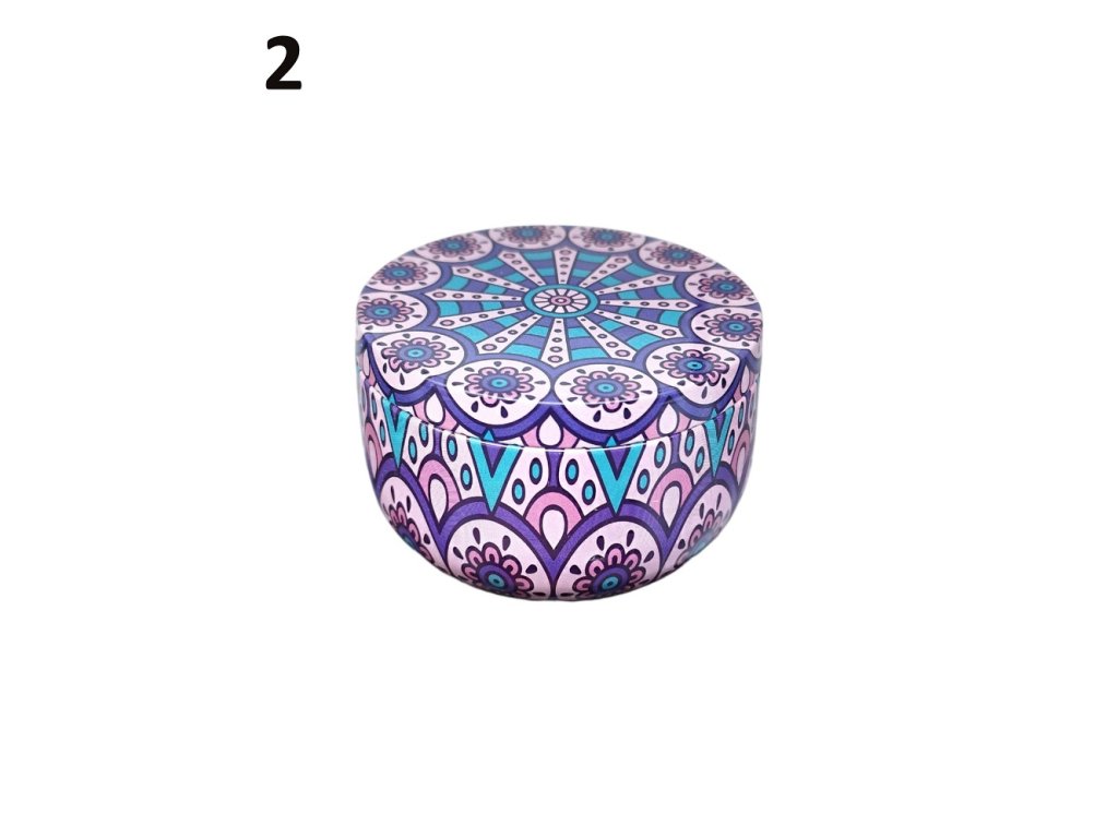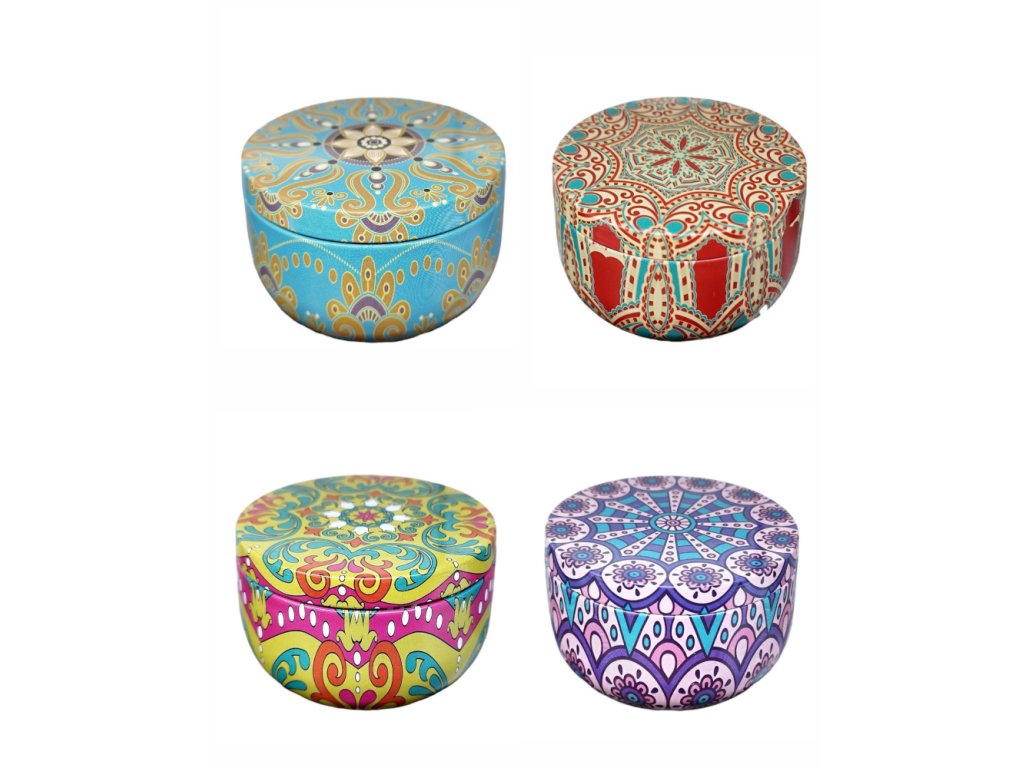 Plechové dózy s víčkem na vytvoření svíček – mandaly