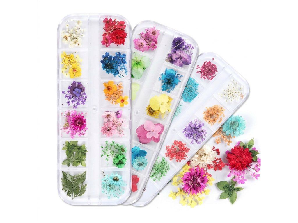 Sada sušených a lisovaných květin do pryskyřice v krabičce