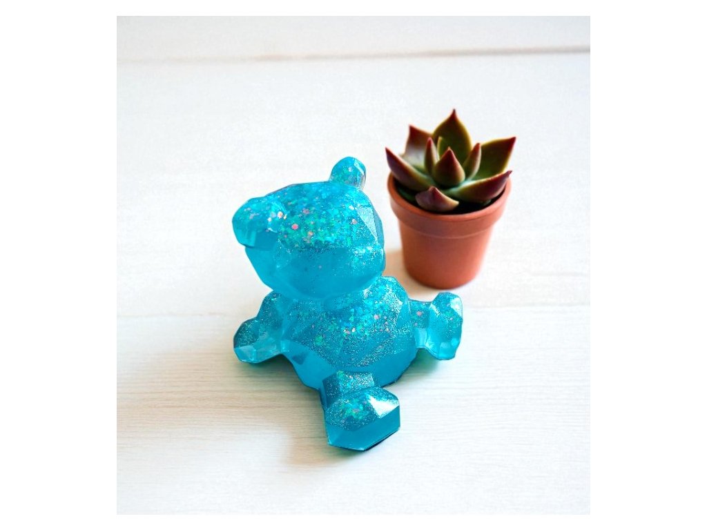 Silikonová forma na výrobu medvídka, který slouží jako stojánek na mobil. Medvídka si ale můžete odlít i jako dekoraci, nebo z něj vyrobit mýdlo nebo svíčku. Forma je vhodná na pryskyřici, vosk, mýdlovou hmotu, squishy gel a za studena odlévané hmoty.