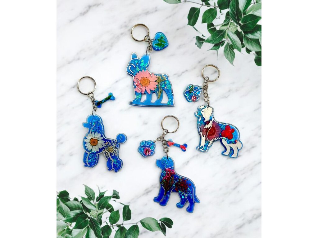 Silikonová forma na výrobu unikátních klíčenek s tématem pejsků. Forma je vhodná pro epoxidovou pryskyřici, UV pryskyřici a další za studena odlévané hmoty jako je NatuResin, sádra, beton atp.