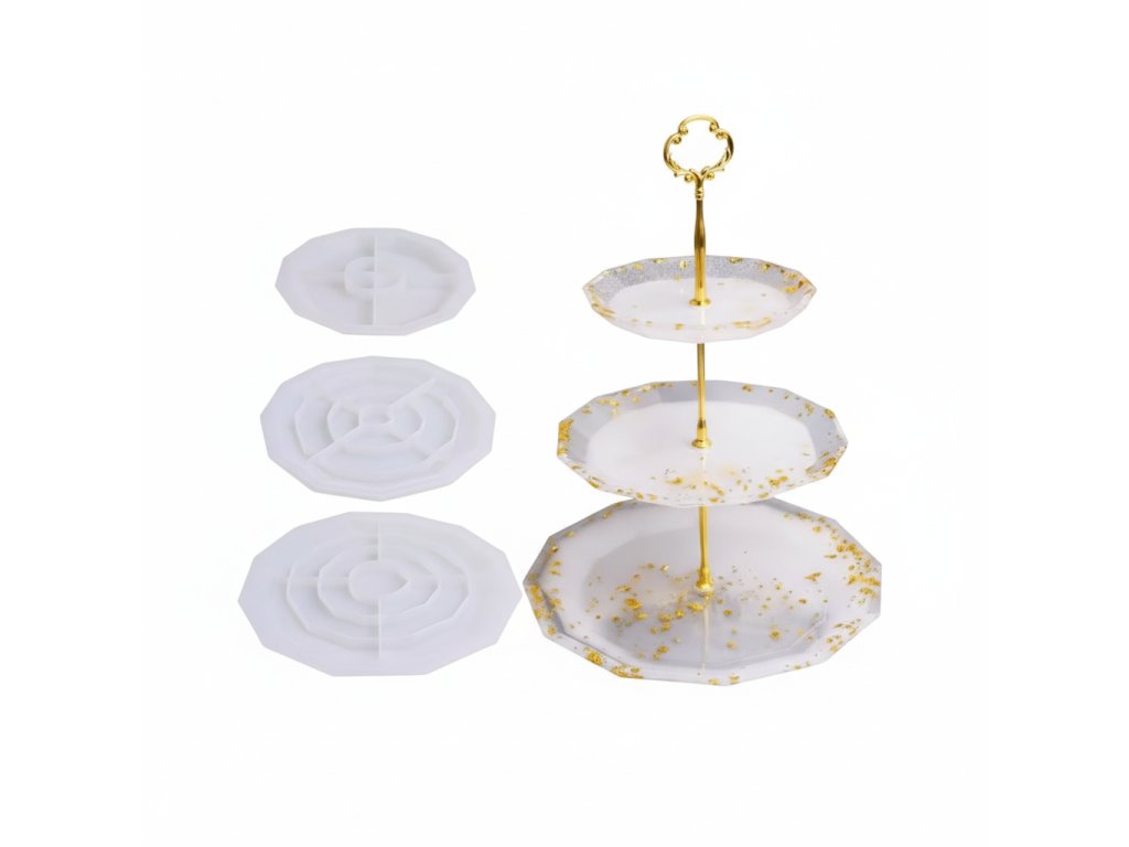 Silikonové formy na výrobu servírovacího stojanu/etažéru. Forma je vhodná pro epoxidovou pryskyřici a další za studena odlévané hmoty jako je NatuResin, sádra, beton atp.