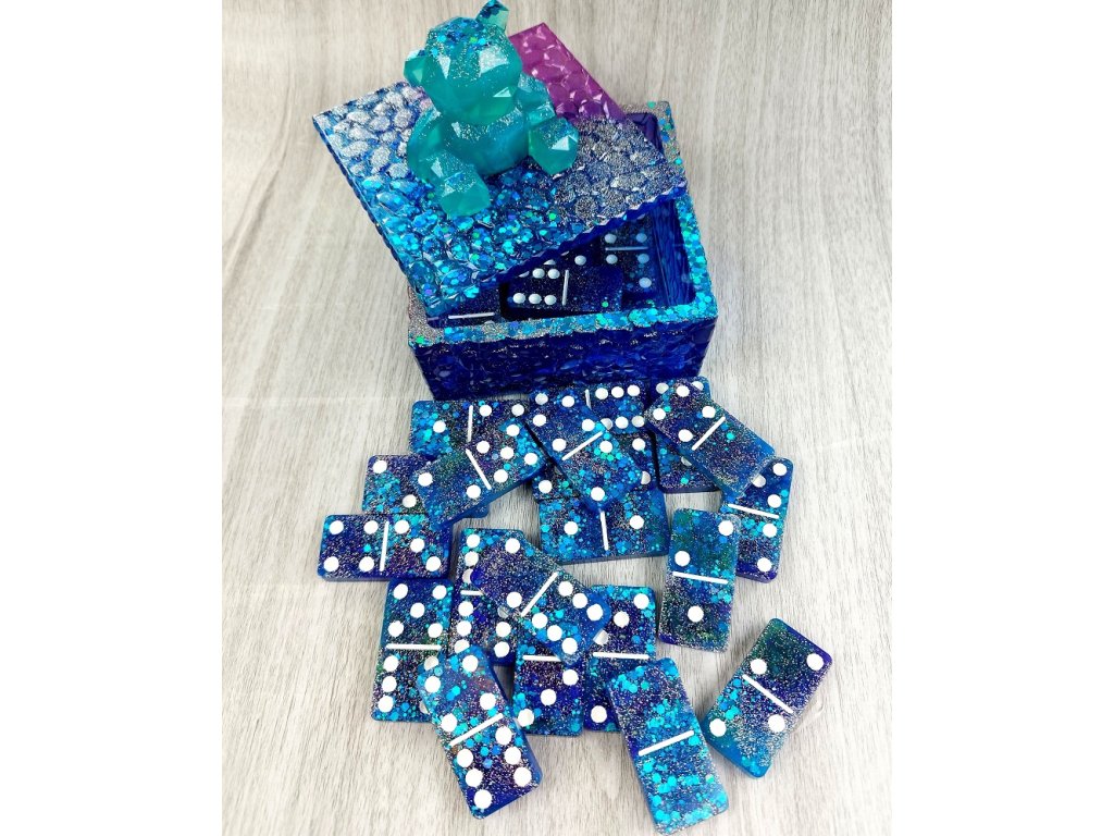 Silikonová forma pro výrobu stolní hry domino. Forma je vhodná pro epoxidovou pryskyřici a další za studena odlévané hmoty jako je NatuResin, sádra, beton atp.