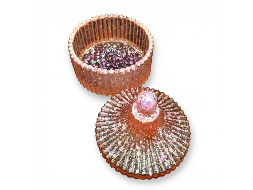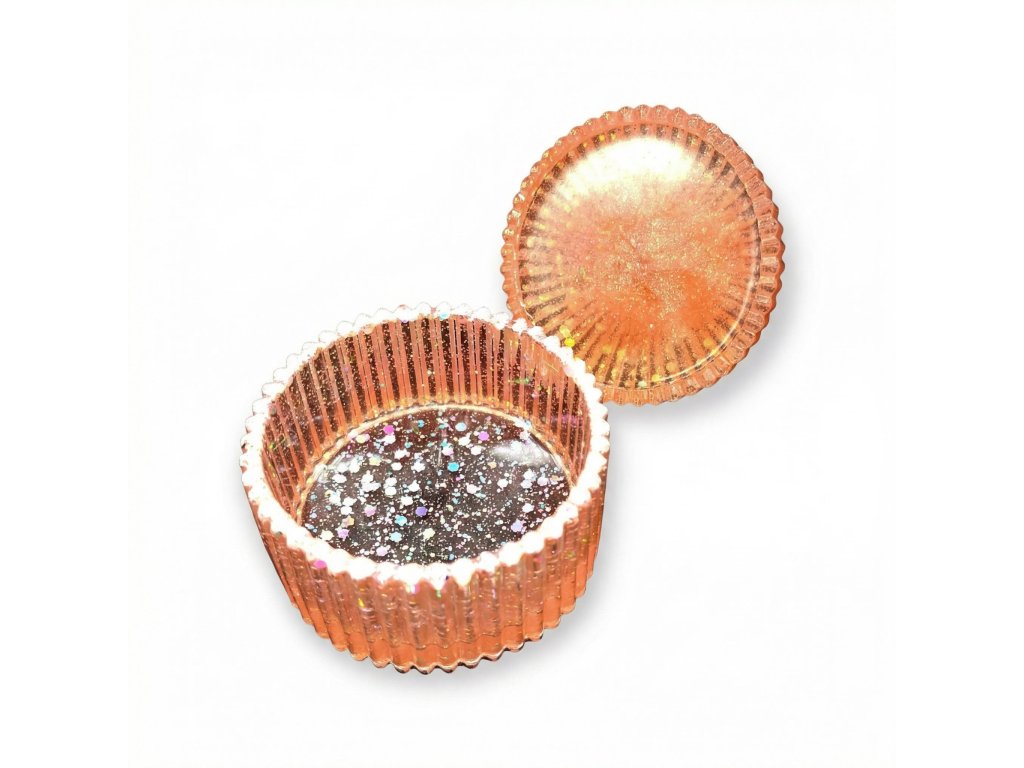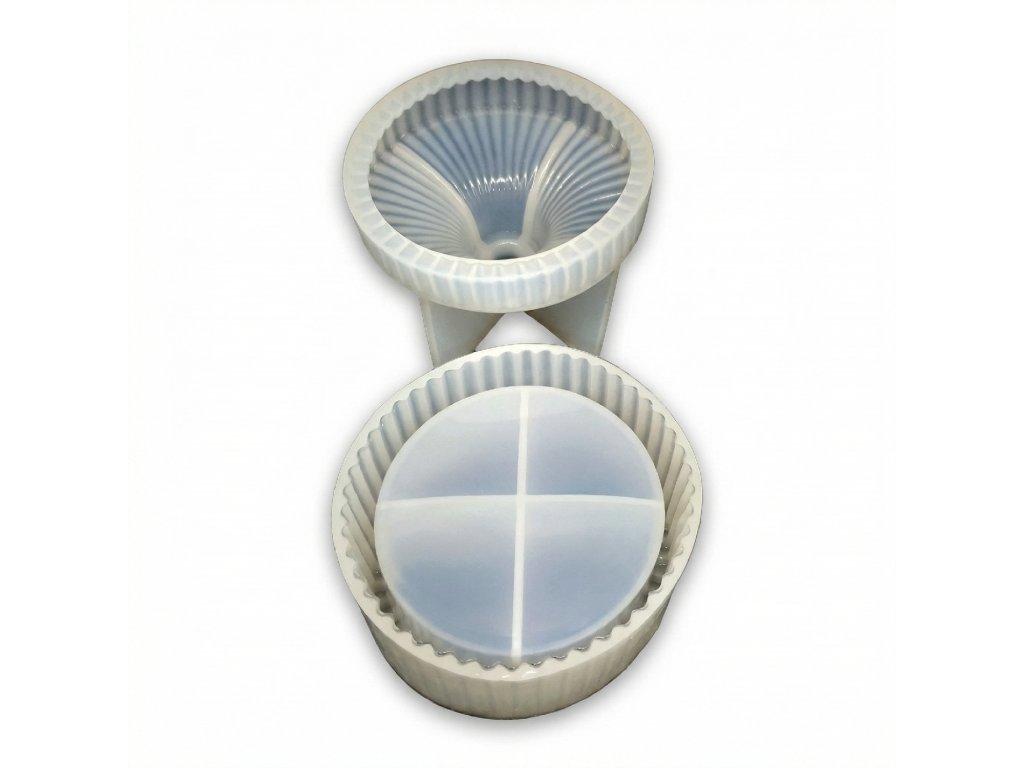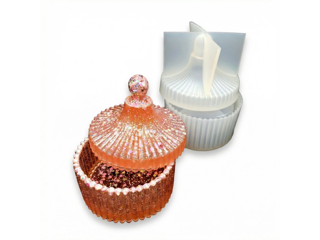 Dvoudílná silikonová forma na výrobu vroubkované krabičky s víčkem. Odlitek již nemusíte nijak upravovat. Z jedné formy vyndáte krabičku a z druhé víčko, a originální výrobek je na světě. Forma je vhodná pro epoxidovou pryskyřici a další za studena odlévané hmoty jako je NatuResin, sádra, beton atp.