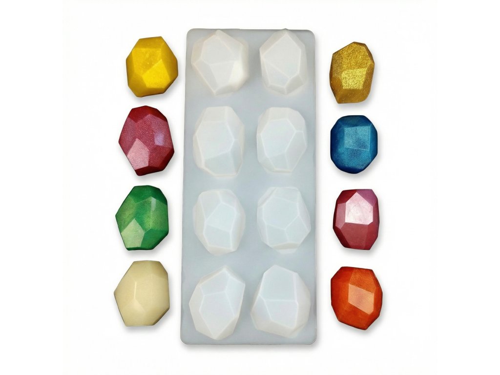 Silikonová forma na výrobu krystalů. Pomocí této formy si vytvoříte roztomilé malé krystaly, které můžete použít jako samostatnou dekoraci, nebo pro další tvoření jako jsou klíčenky, šperky, podtácky nebo hodiny.