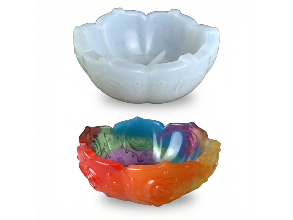Silikonová forma na výrobu misky s elegantním vzorováním. Odlitek nemusíte dále upravovat, z formy jej vyndáte již ve tvaru misky. Forma je vhodná pro epoxidovou pryskyřici a další za studena odlévané hmoty jako je NatuResin, sádra, beton atp.