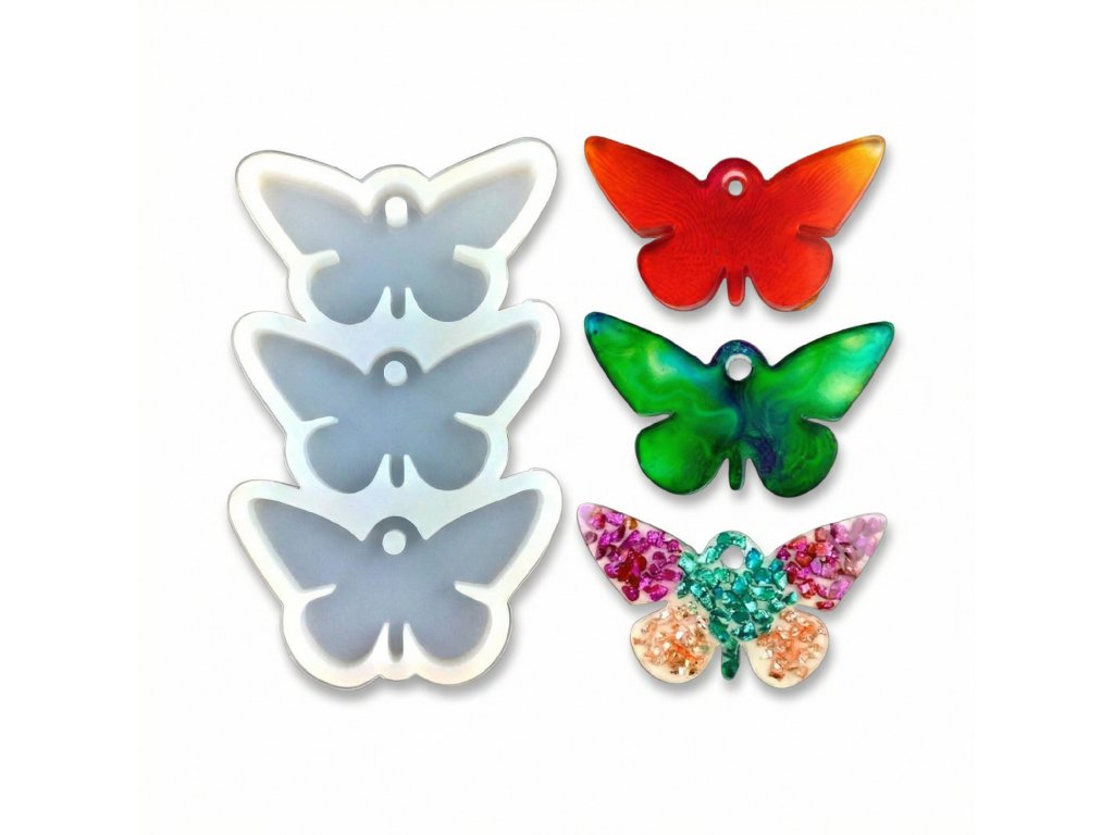Silikonová forma na výrobu motýlků, které můžete použít jako samostatnou dekoraci, nebo pro další tvoření jako jsou klíčenky, šperky, závěsné dekorace do okna, nebo jako dekoraci do podtácků. Forma je vhodná pro epoxidovou pryskyřici, UV pryskyřici a další za studena odlévané hmoty jako je NatuResin, sádra, beton atp.