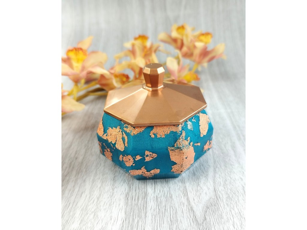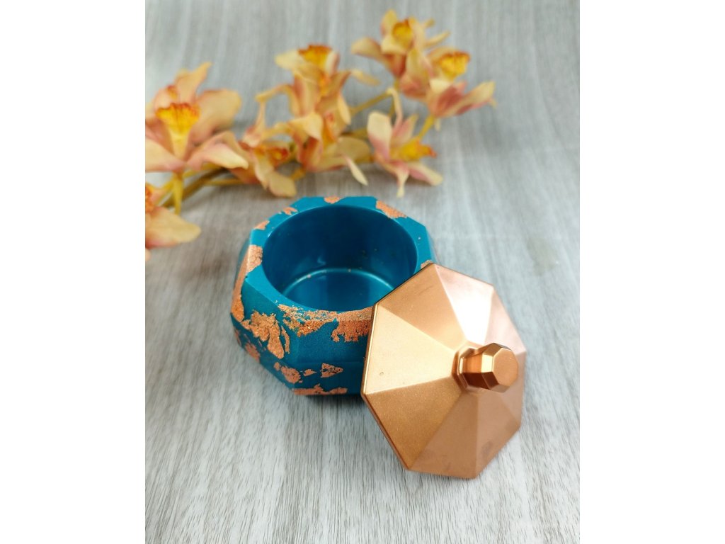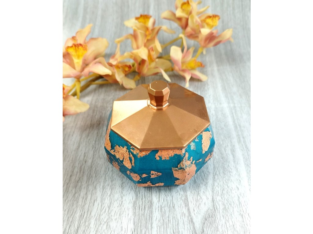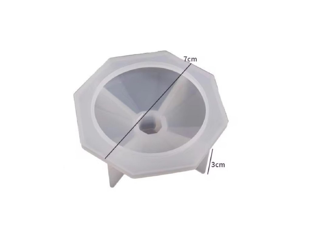 Dvoudílná silikonová forma na výrobu osmihranné krabičky s víčkem. Forma je vhodná pro epoxidovou pryskyřici a další za studena odlévané hmoty jako je NatuResin, sádra, beton atp.
