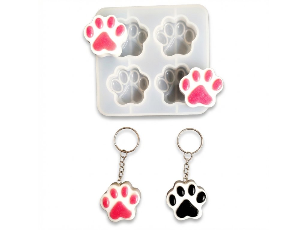 Silikonová forma na výrobu klíčenek ve tvaru tlapky. Forma je vhodná pro epoxidovou pryskyřici, squishy gel a další za studena odlévané hmoty jako je NatuResin, sádra, beton atp.