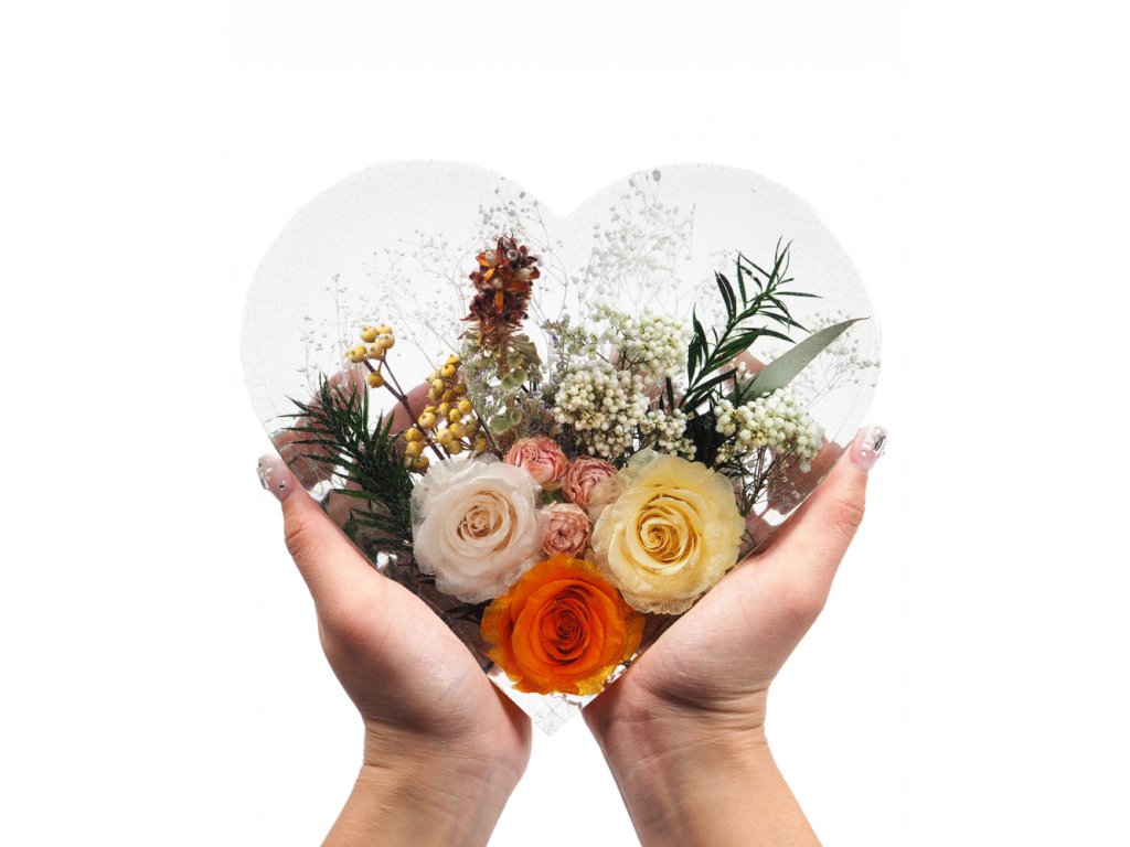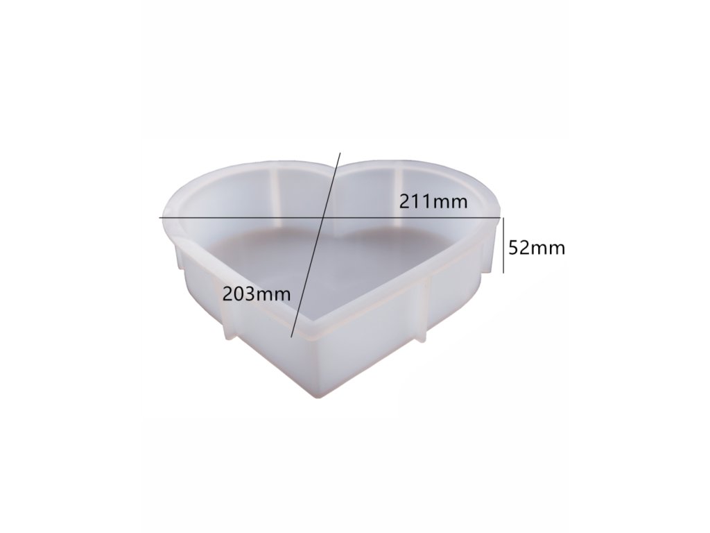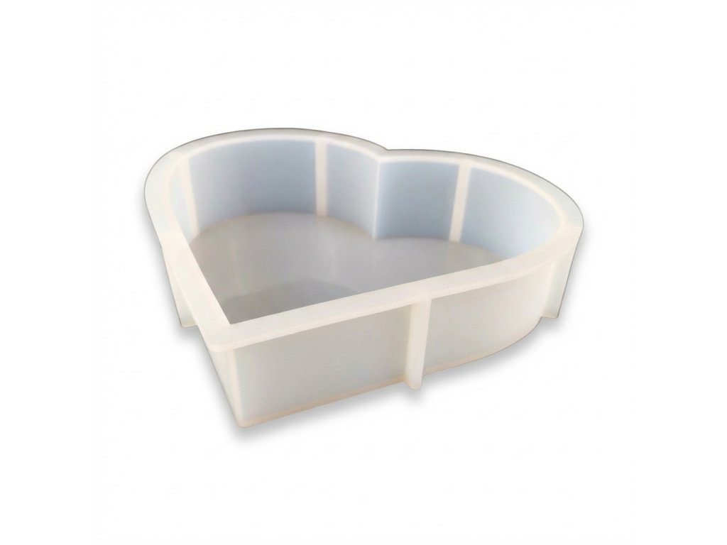 Velká silikonová forma na výrobu srdce. Tento druh formy je velmi oblíbený pro odlévání velkých bloků pryskyřice plných sušených kytic, a také na výrobu lamp, zarážek do knihovny a upomínkových předmětů.
