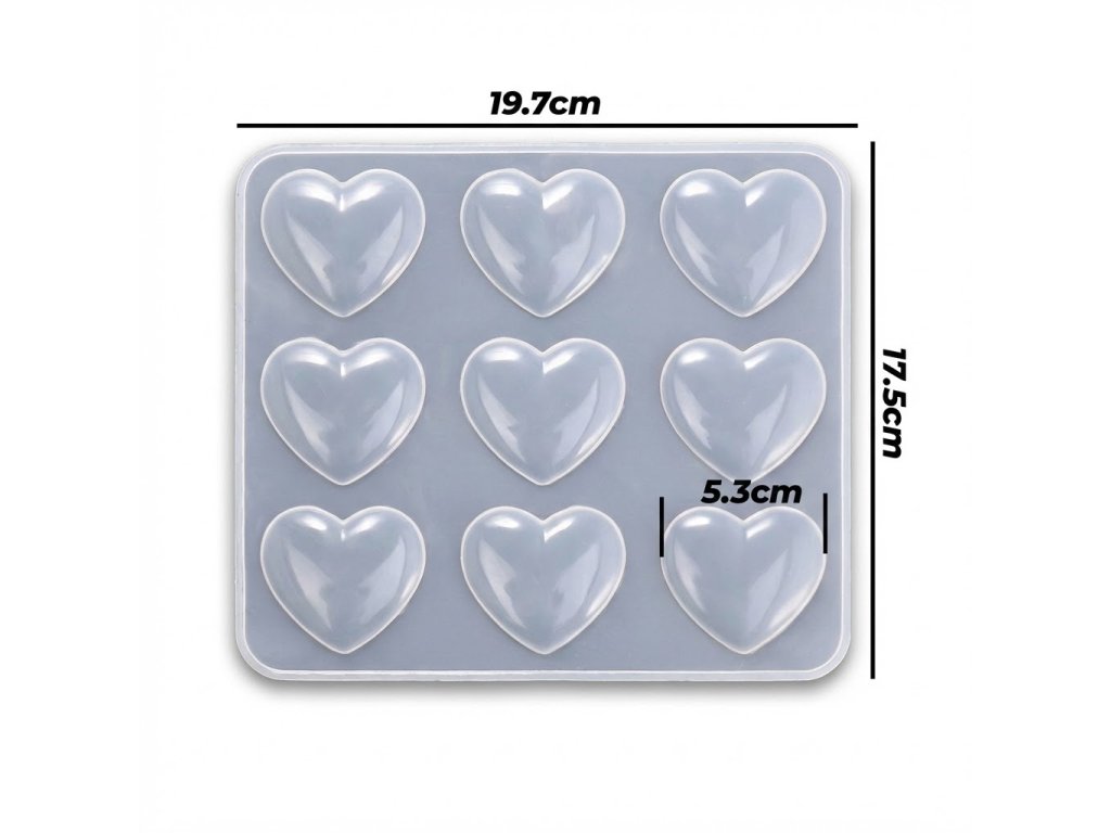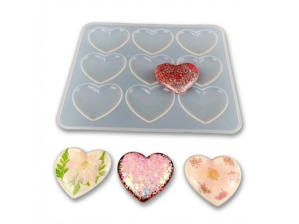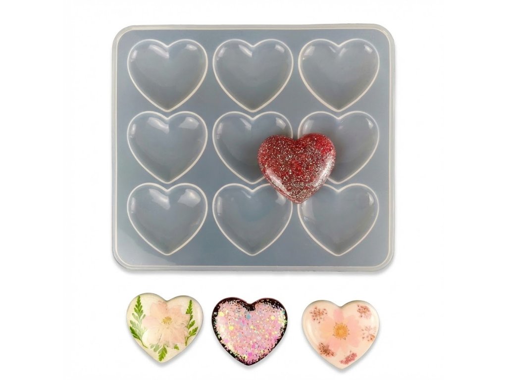 Silikonová forma na výrobu srdíček, které můžete použít jako samostatnou dekoraci, nebo pro další tvoření jako jsou klíčenky, šperky, podtácky nebo do hodin. Forma je vhodná pro epoxidovou pryskyřici, UV pryskyřici a další za studena odlévané hmoty jako je NatuResin, sádra, beton, squishy gel atp.