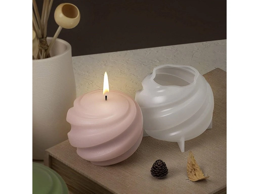 Silikonová forma na výrobu svíček se vzorem spirály.