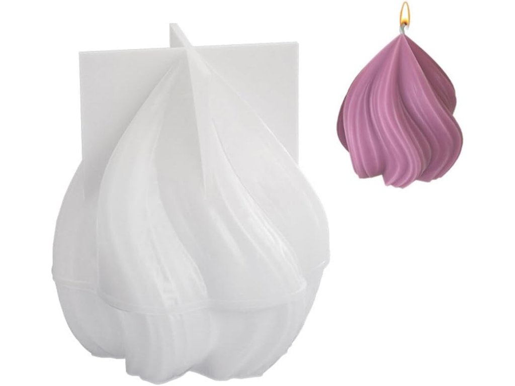 Silikonové formy na výrobu svíček s jemným vlnitým vzorem ve tvaru stromečku.