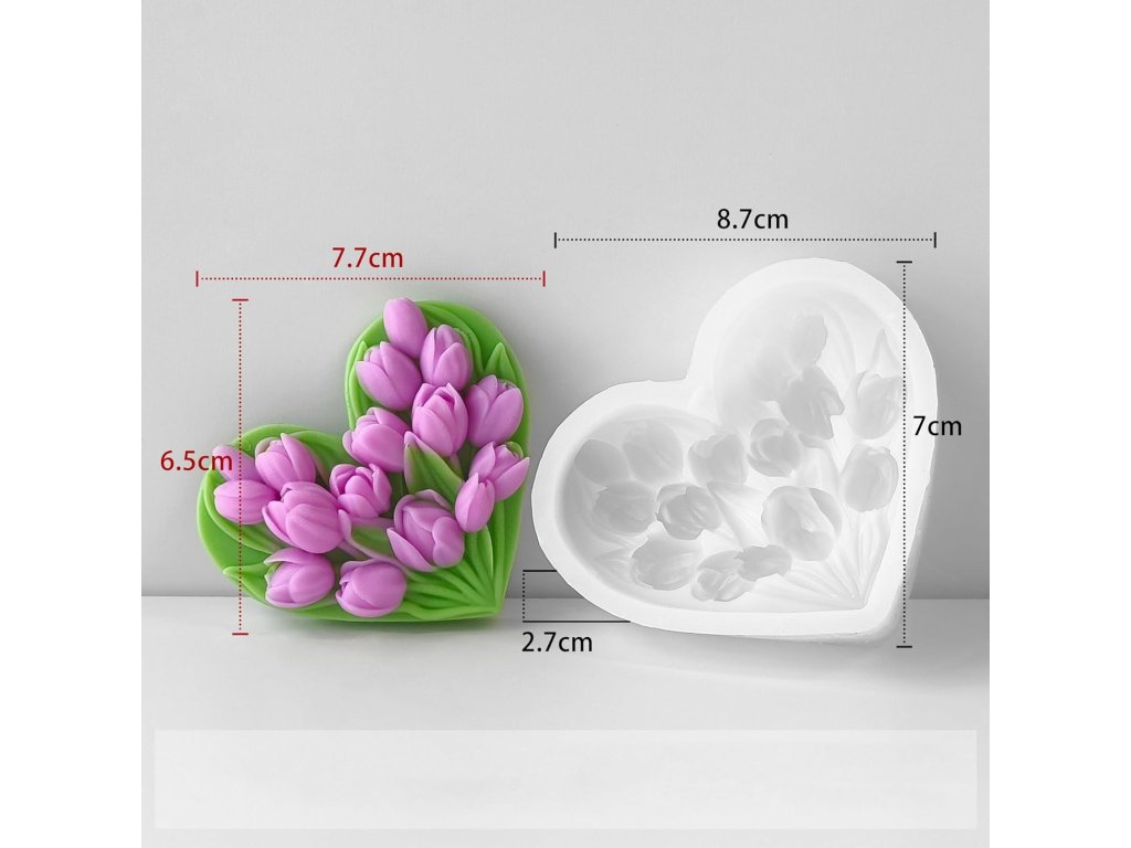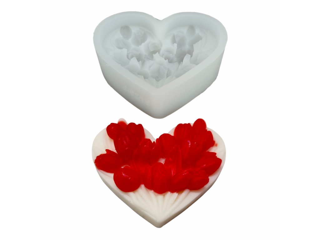 Silikonová forma na výrobu mýdla – srdce s tulipány