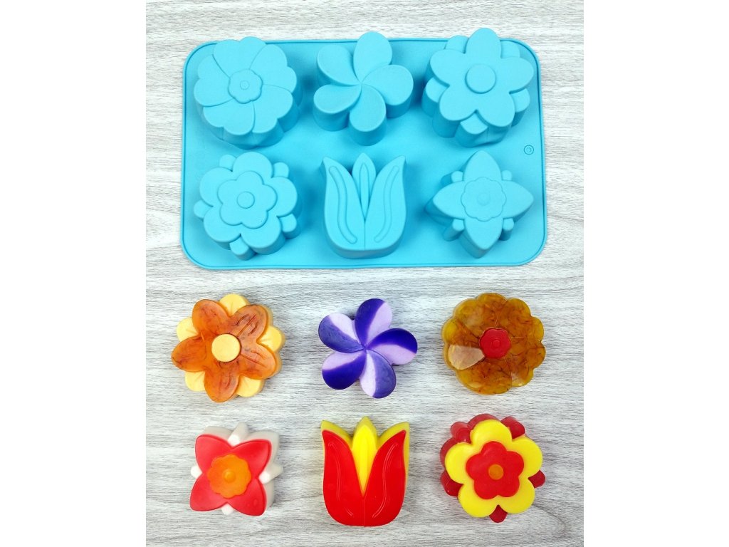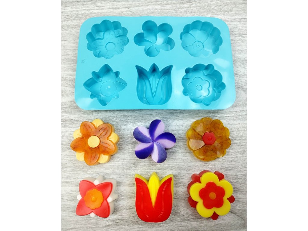 Silikonová forma na výrobu mýdla – květy 6 ks