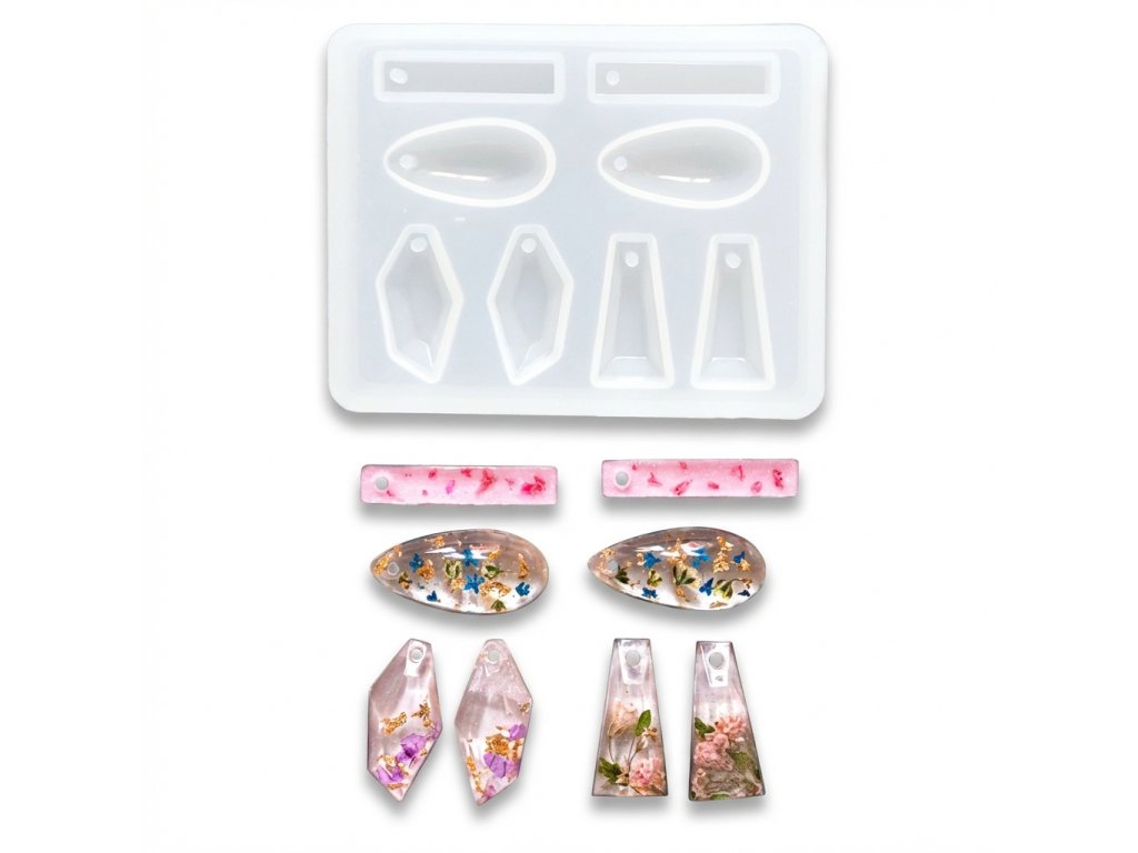 Silikonová forma na výrobu přívěsků a náušnic. Forma je vhodná pro epoxidovou pryskyřici, UV pryskyřici a další za studena odlévané hmoty jako je NatuResin, sádra, beton atp.