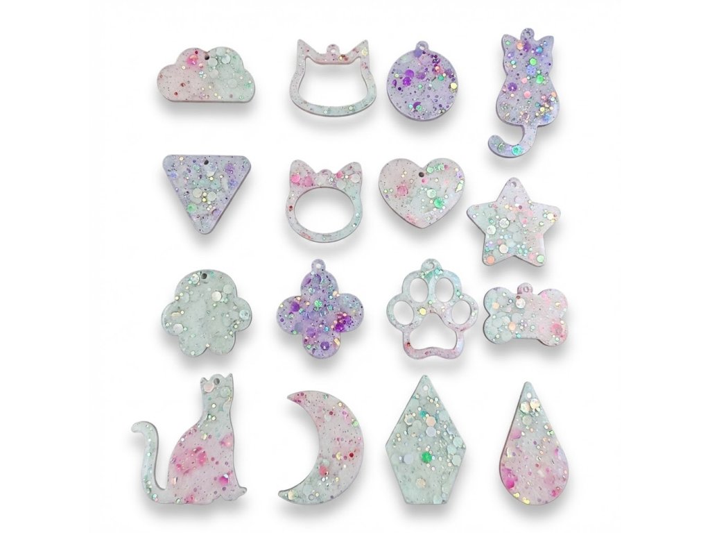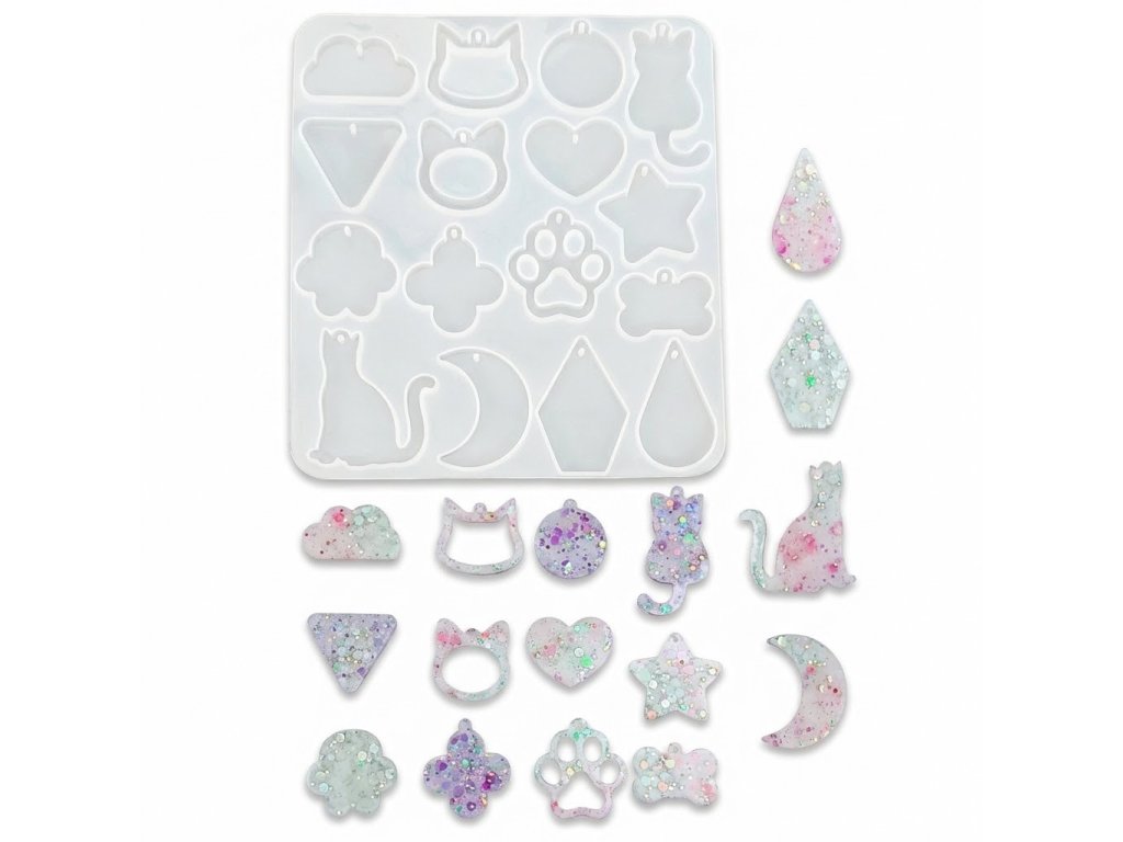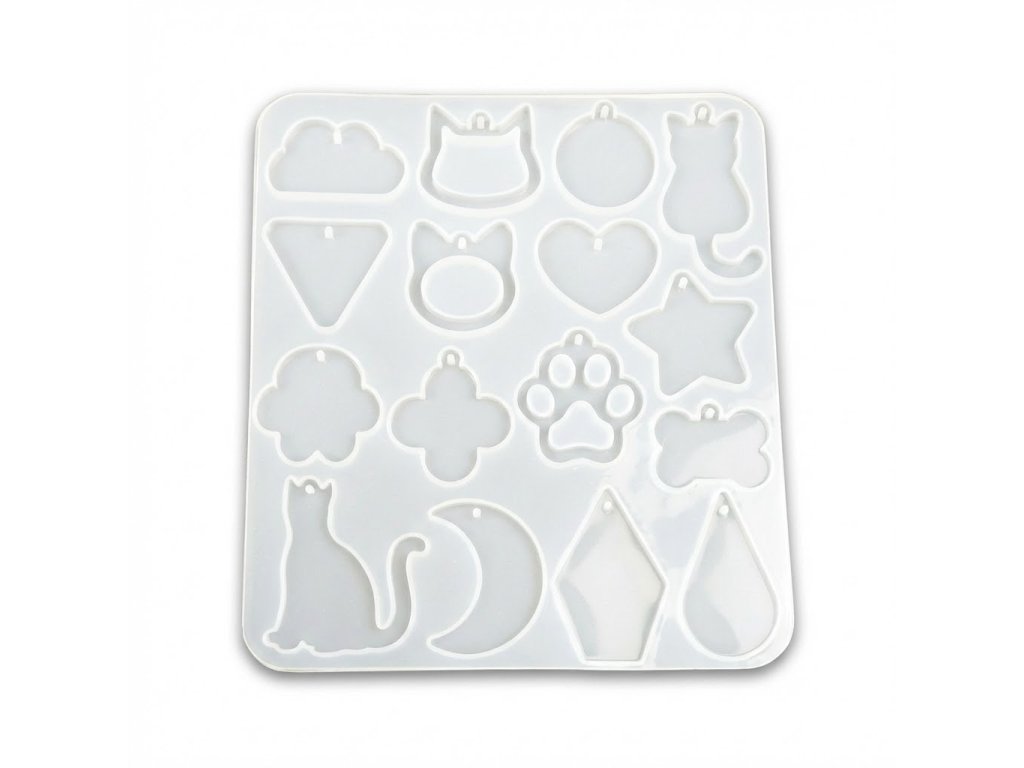 Silikonová forma na výrobu přívěsků a náušnic. Forma je vhodná pro epoxidovou pryskyřici, UV pryskyřici a další za studena odlévané hmoty jako je NatuResin, sádra, beton atp.