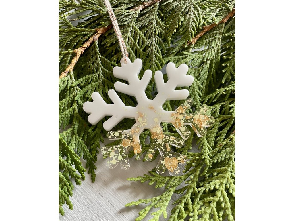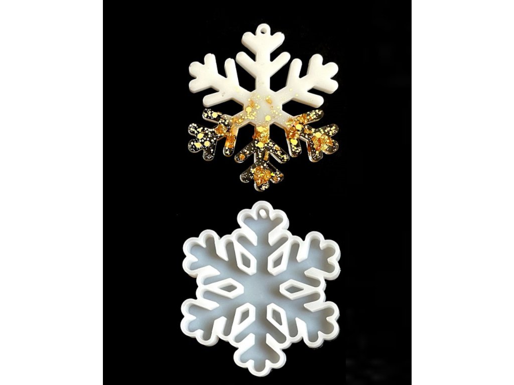 Silikonová forma na výrobu vločky. Vločka má očko na zavěšení, vaše vlastnoručně vyrobená vločka tak může během chvíle zdobit okno nebo dveře. Další možností je použít vločku jako podtácek, dekoraci na stůl nebo z ní můžete udělat misku (video návod níže).