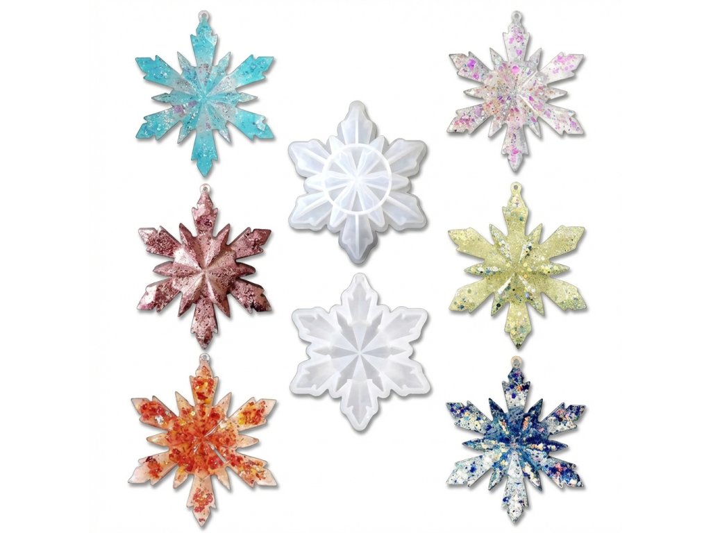 Silikonová forma na výrobu vločky. Forma je vhodná pro epoxidovou pryskyřici, UV pryskyřici a další za studena odlévané hmoty jako je NatuResin, sádra, beton atp.
