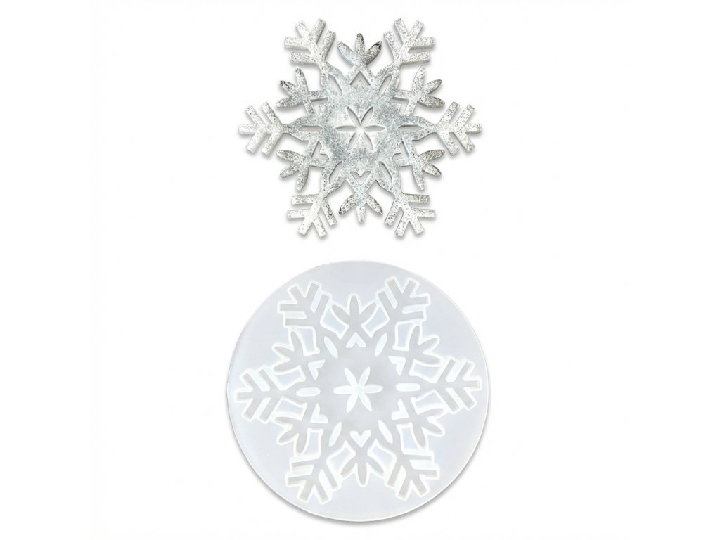 Silikonová forma na výrobu velké vločky. Výrobek z této formy může využít hned dvěma způsoby. Prvním způsobem je používat vločku jako podtácek, druhým způsobem je zavěšení na stromeček nebo do okna, stačí provléct stužku. Vyrobte si sváteční dekoraci ve vašich oblíbených barvách!