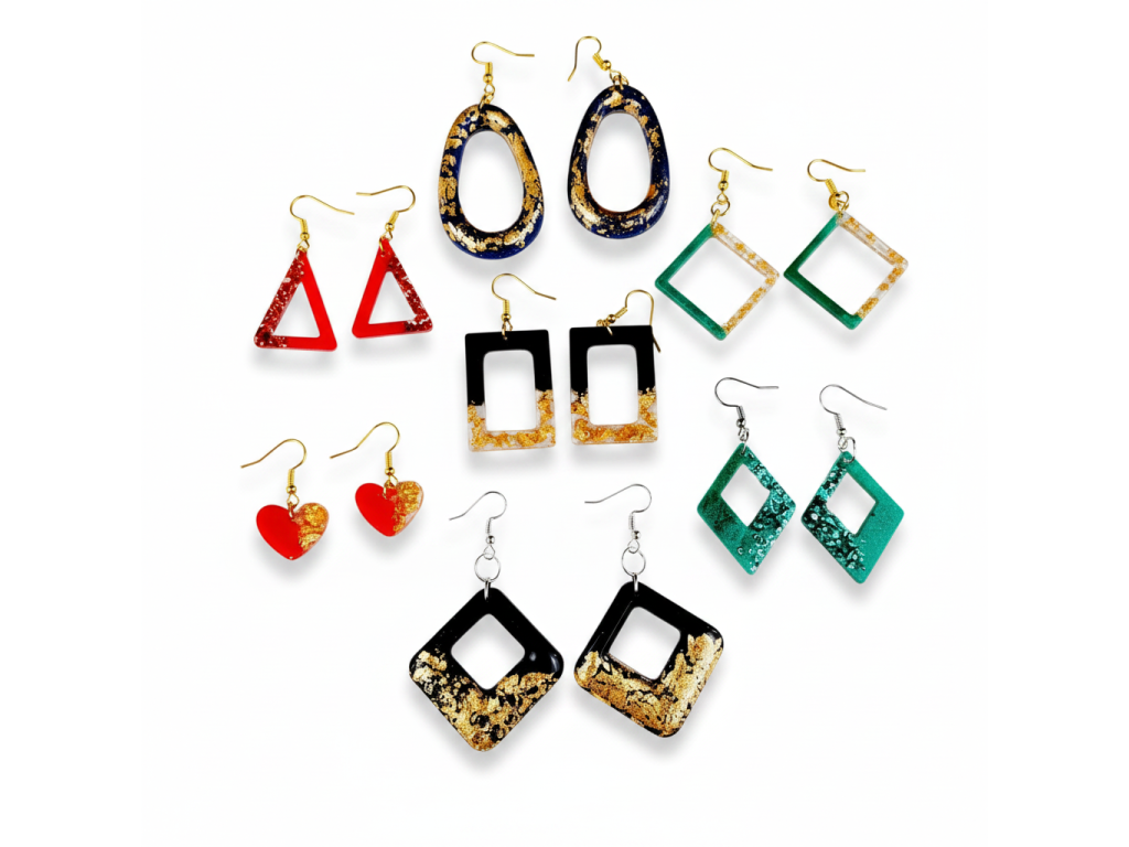 Chcete vytvoriť ďalšie farebné kombinácie? Kúpte si kovové prášky , farbivá , kovové vločky alebo iné ozdoby a vytvorte si krajšie šperky. Formy sú opakovane použiteľné a možnosti výroby šperkov sú nespočetné!