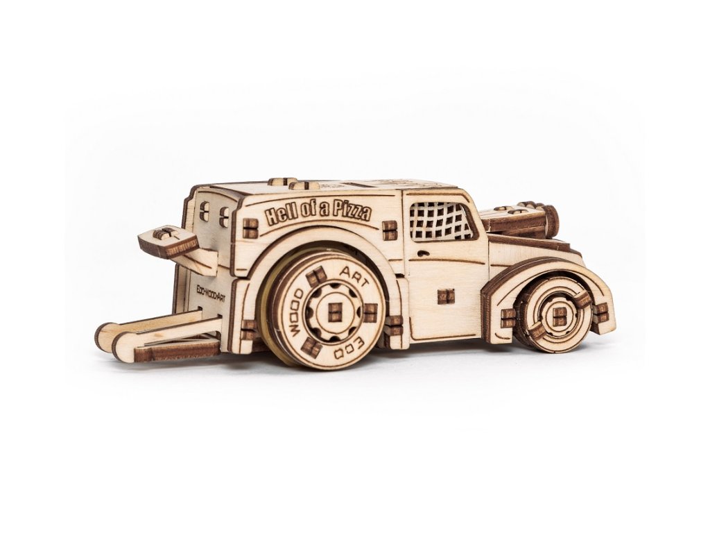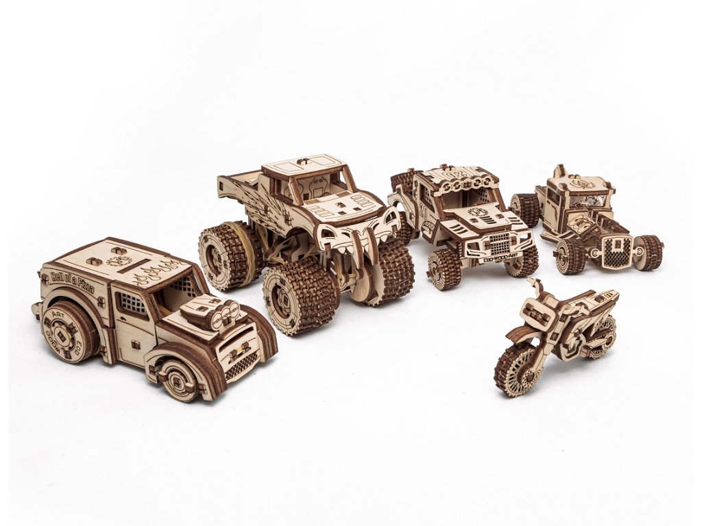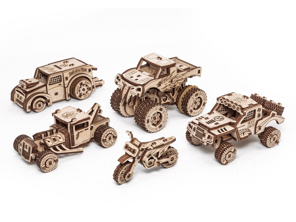 Z precízne vyrezávaných dielikov postupne vytvoríte detailne prepracované vozidlá s funkčným mechanickým pohonom. Po natiahnutí sa jednotlivé modely samostatne rozbehnú a predvedú dômyselný systém ozubených kolies a pohyblivých častí. Skladanie prináša radosť z tvorenia aj uspokojenie z plne funkčného výsledku, ktorý nie je len dekoráciou, ale skutočne ožíva pohybom.
