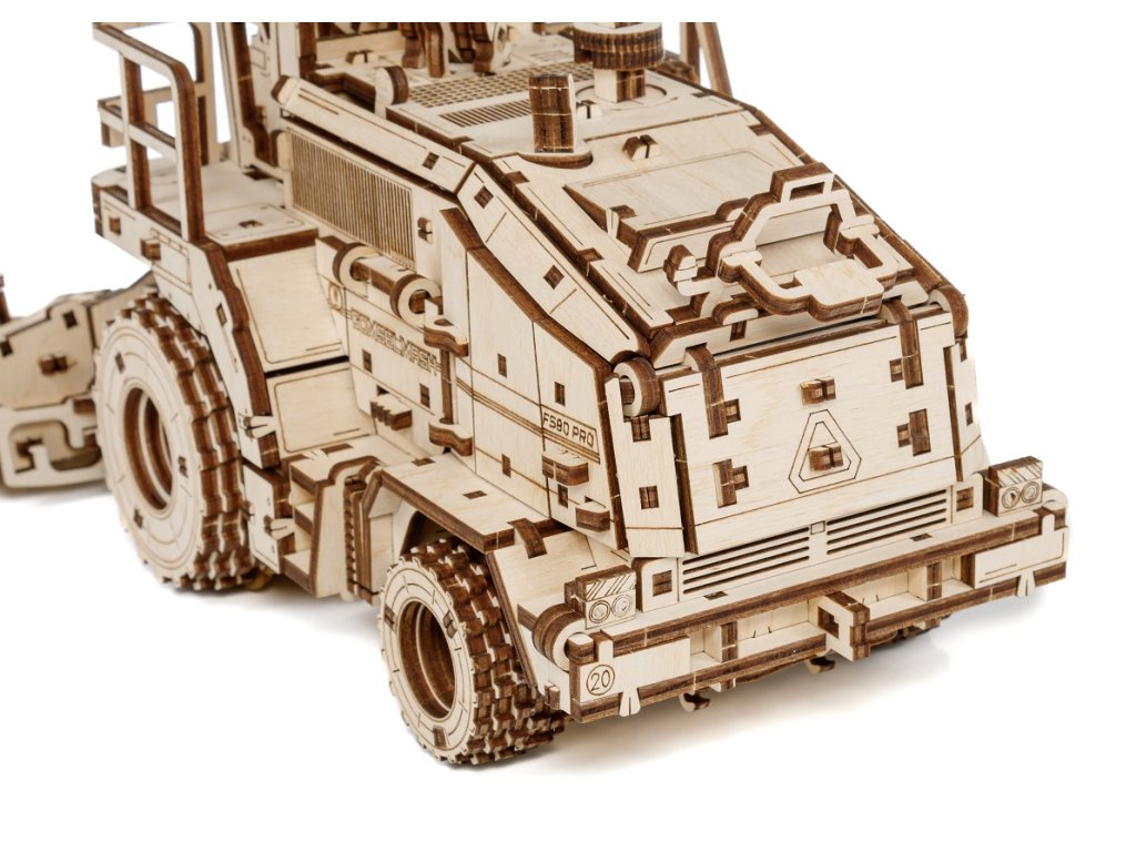 Drevená mechanická stavebnica zberacej rezačky FS80 PRO je detailne prepracovaný model, ktorý spája skladanie s fascinujúcou ukážkou funkčnej mechaniky.