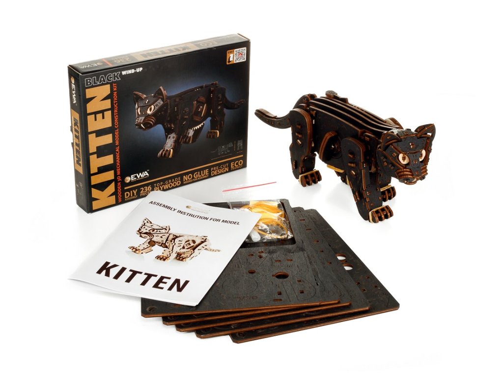 Objavte originálnu 3D drevenú stavebnicu. Táto mačka je mechanická skladačka, ktorú si sami zostavíte a ktorá po natiahnutí samostatne chodí ako živá vďaka šikovnému mechanickému pohonu vo vnútri.