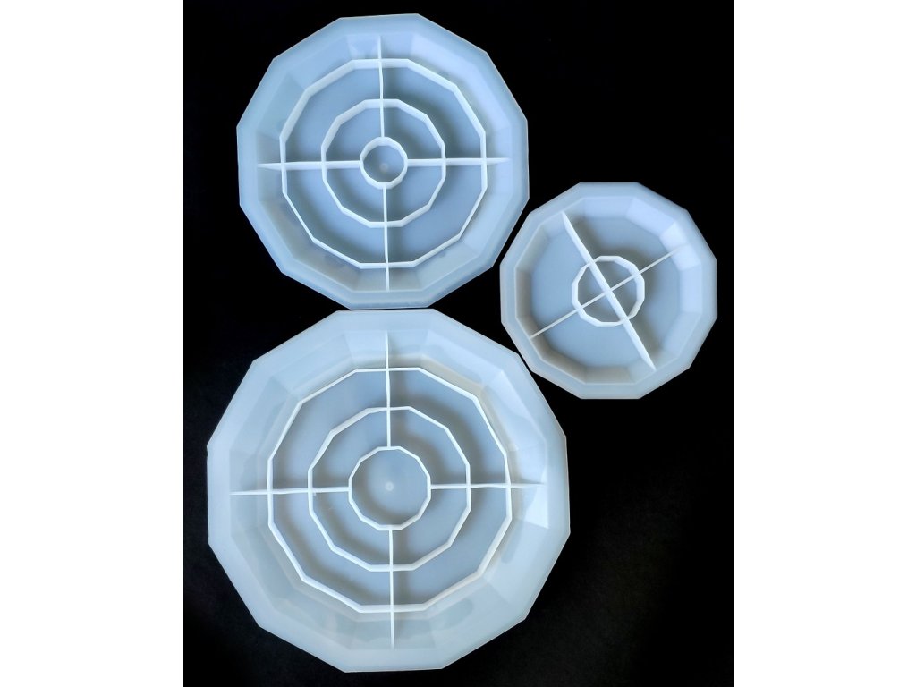 Silikónové formy na výrobu servírovacieho stojana/etažéra. Forma je vhodná pre epoxidovú živicu a ďalšie za studena odlievané hmoty ako je NatuResin, sadra, betón atď.