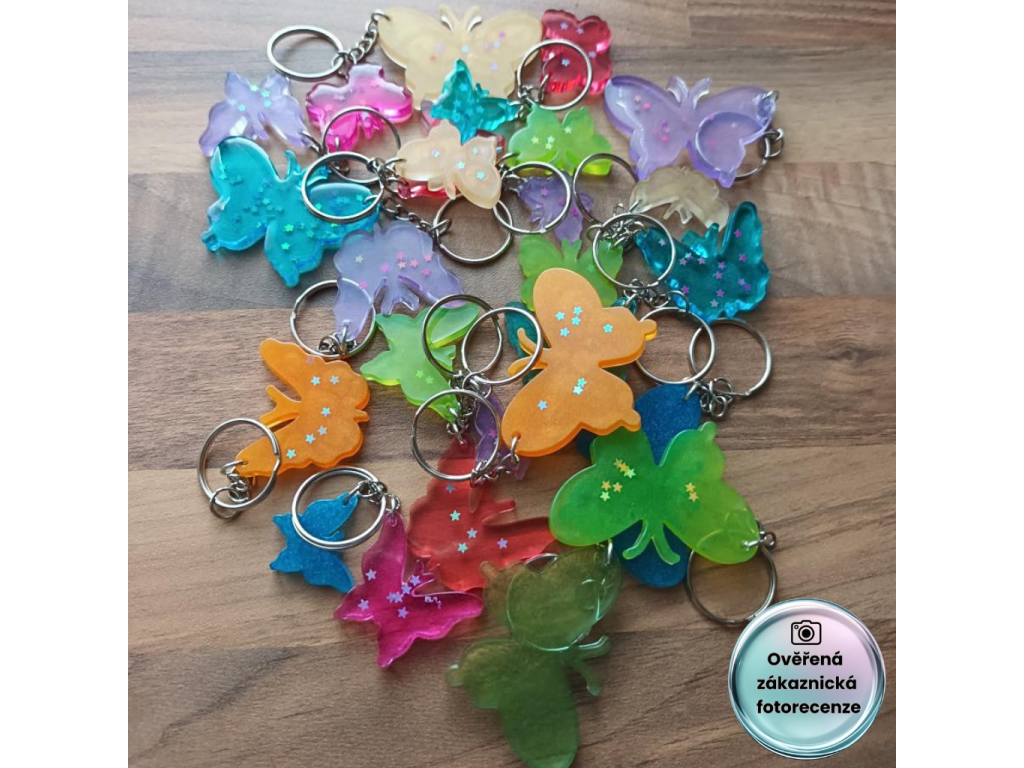 Silikónová forma na výrobu motýlikov z epoxidovej živice. Pomocou tejto formy vytvoríte jedinečné motýle, ktoré môžete použiť ako samostatnú dekoráciu alebo na iné výtvory, napríklad prívesky na kľúče, šperky, dekorácie na zavesenie do okna alebo ako dekoráciu na podložky.